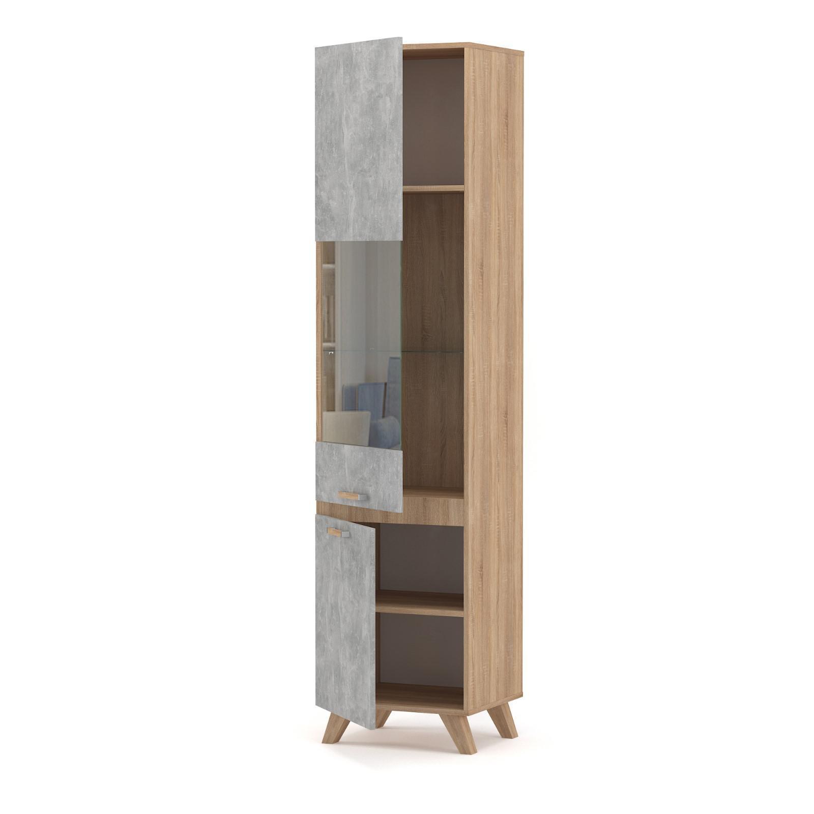 Пенал 1 ств Фарго со стеклом, 504х436х2106, Дуб сонома/Бетон светлый
