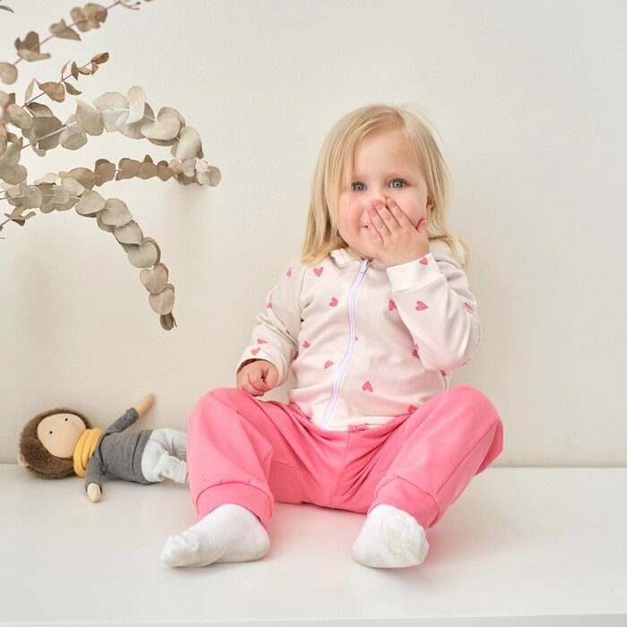 Комплект: худи и брюки Крошка Я "Зайчик", рост 80-86 см, бежевый/розовый