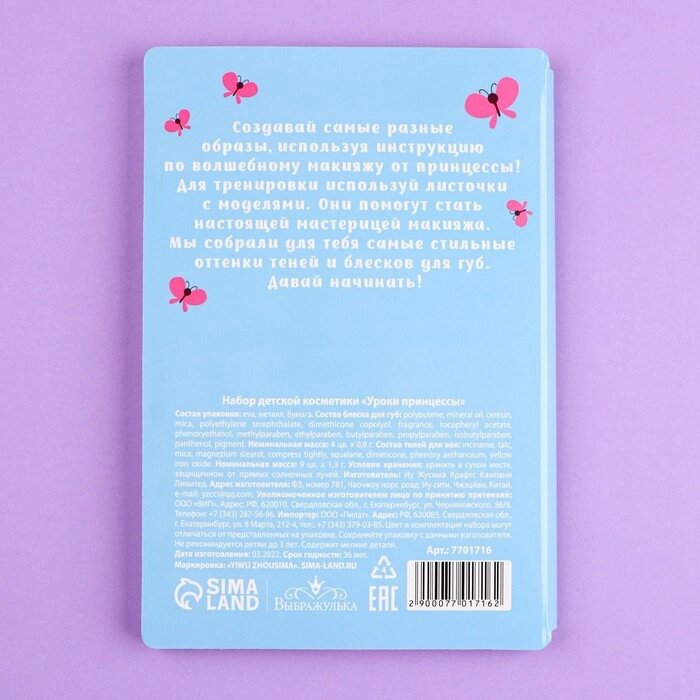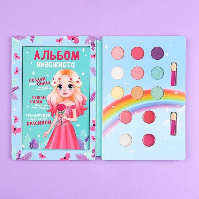 Набор детской косметики. Стань визажистом "Уроки принцессы" тени 9 шт, блески 4 шт.