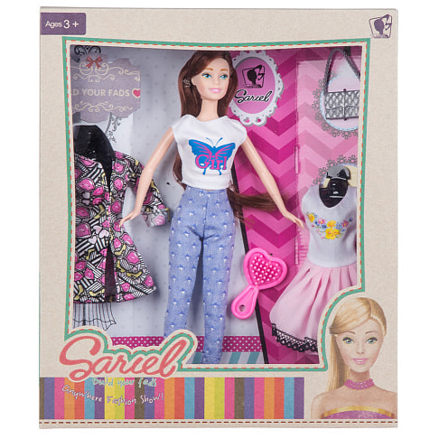 Стильная кукла с аксессуарами станет замечательным подарком для каждой девочки! В набор входит кукла с длинными волосами в удобном наряде, два дополнительных платья и расческа. Проведите время весело вместе с любимой куклой! Высота куклы 29 см.