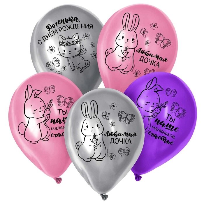 Шар латексный 12"Доченька, С Днём рождения", 25 шт.