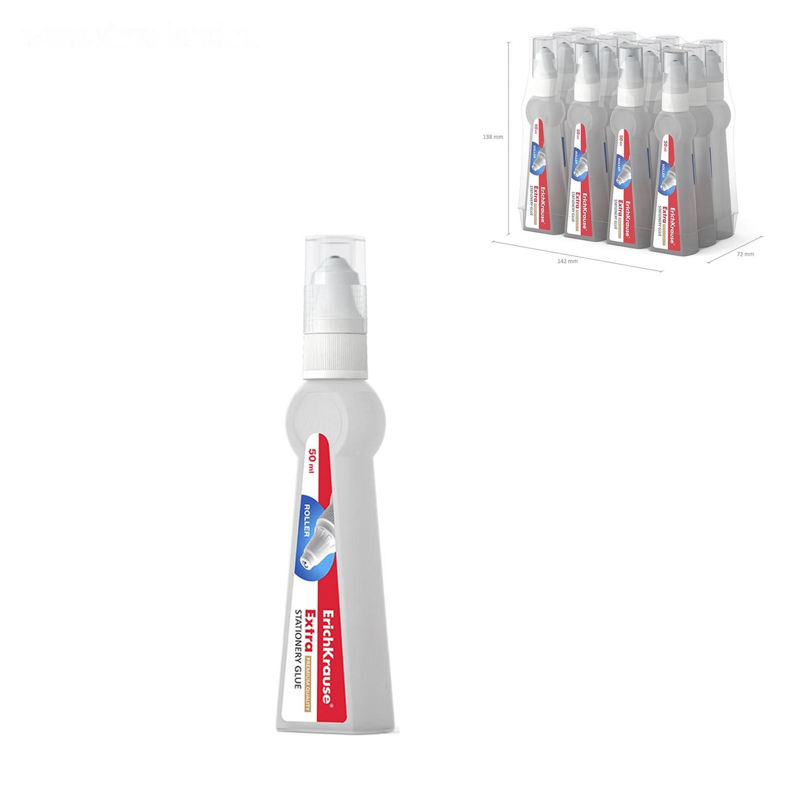 Клей-роллер канцелярский ErichKrause, 50 мл, с роликовым аппликатором, подходит для бумаги, картона и ткани, морозостойкий