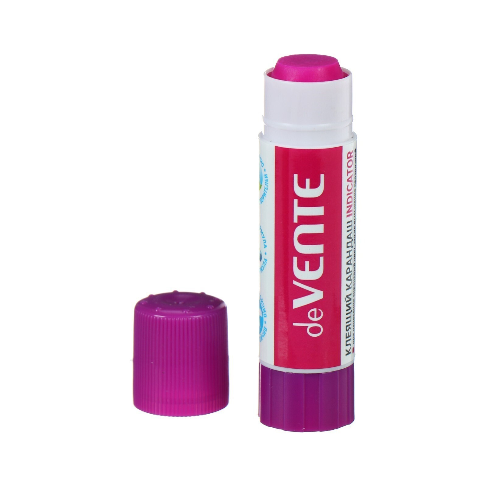 Клеящий карандаш PVA основа "deVENTE. Indicator" 08 г круглый фиолетовый (при высыхании - прозрачный) в картонном дисплее с пластиковым поддоном.
