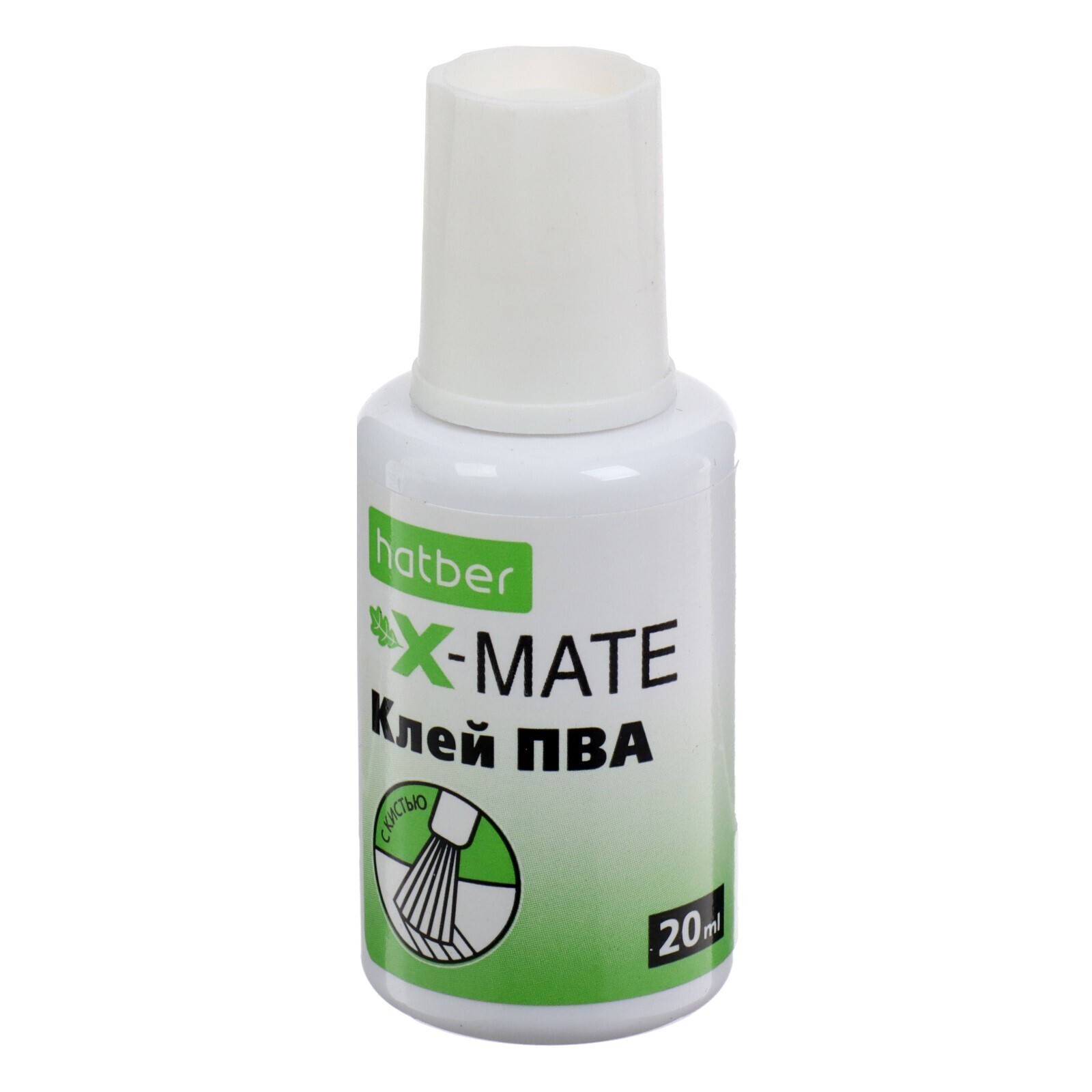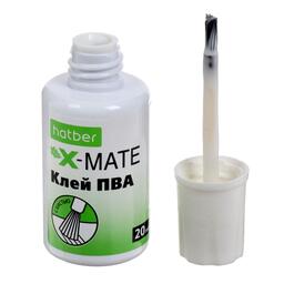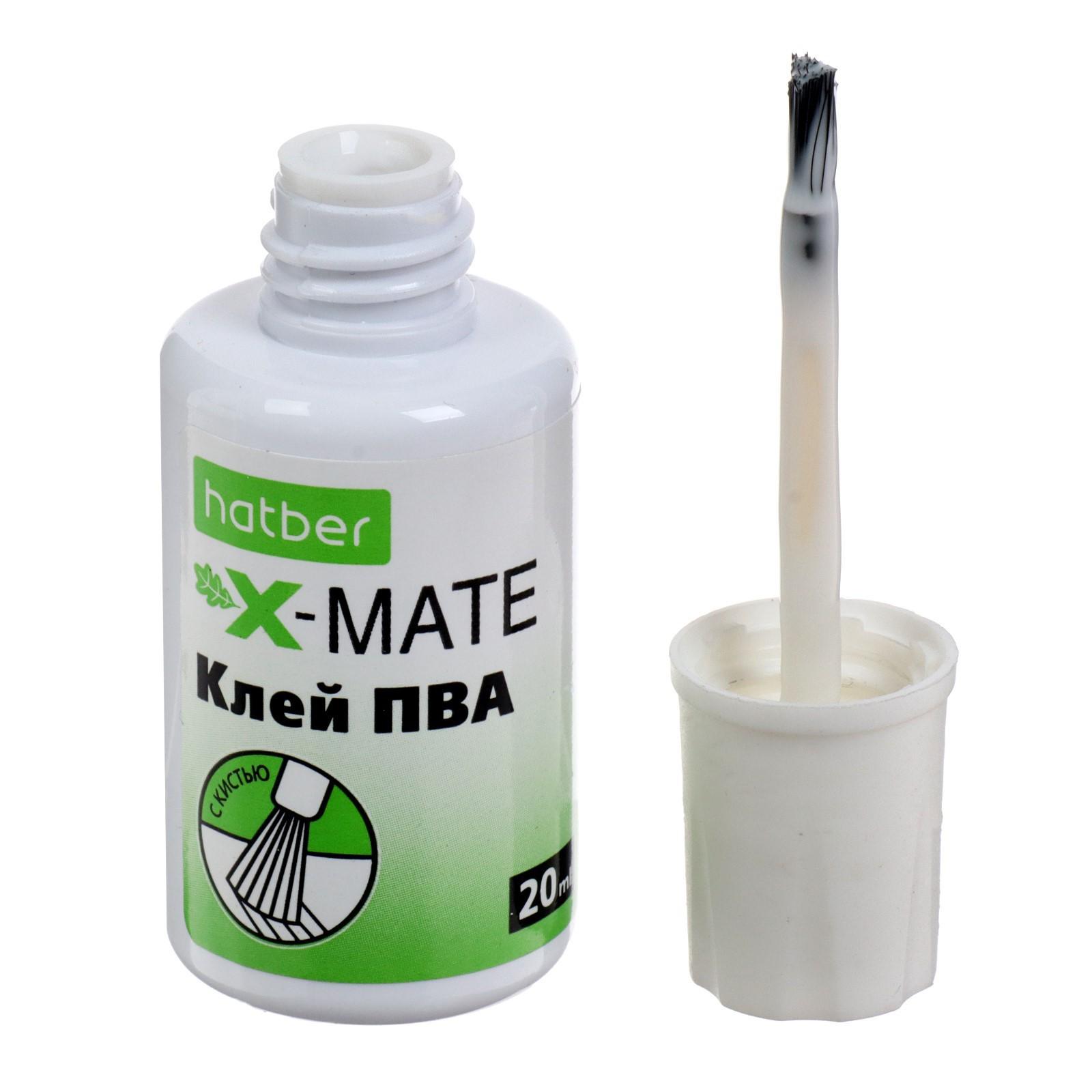 Клей ПВА 20мл, Hatber X-Mate, с кисточкой