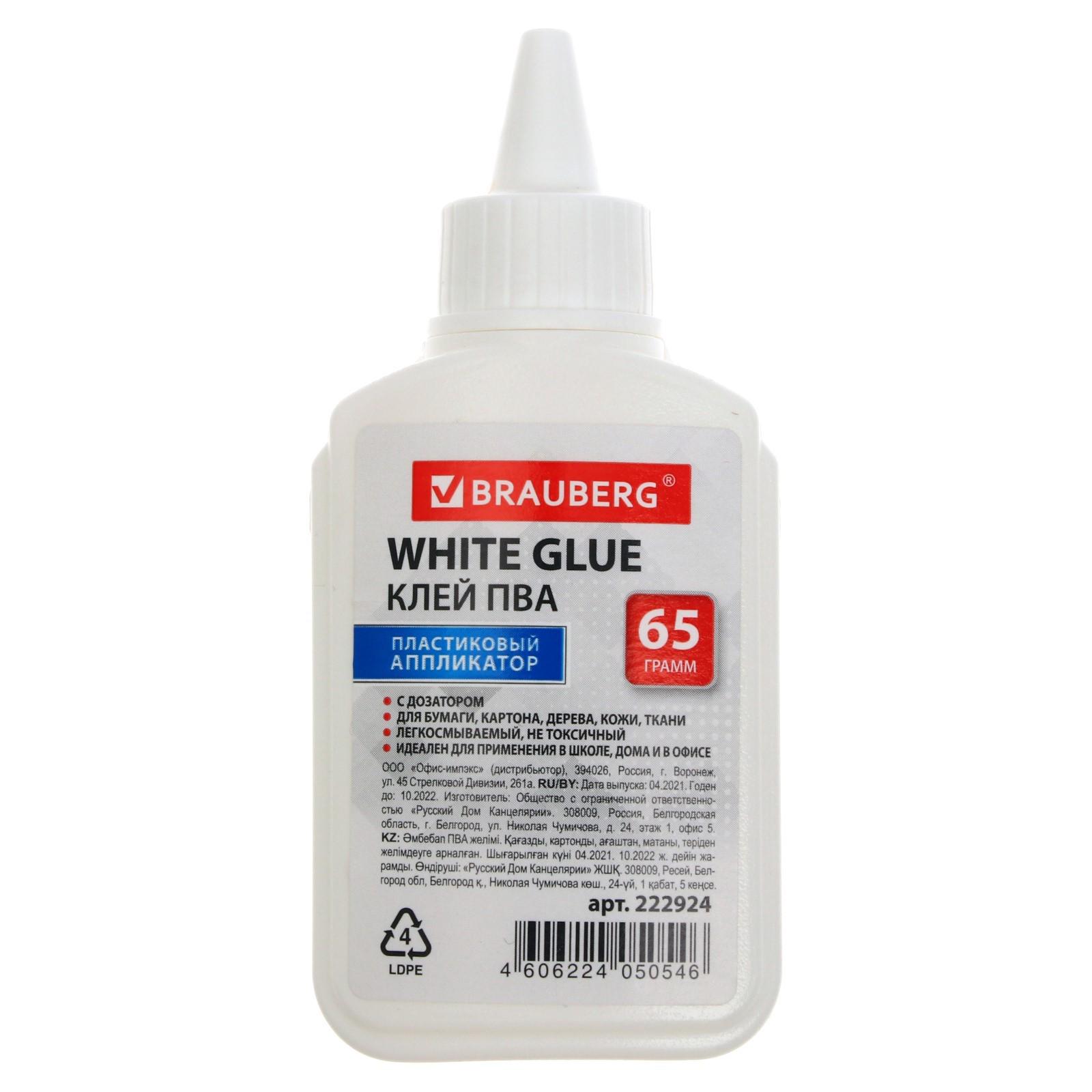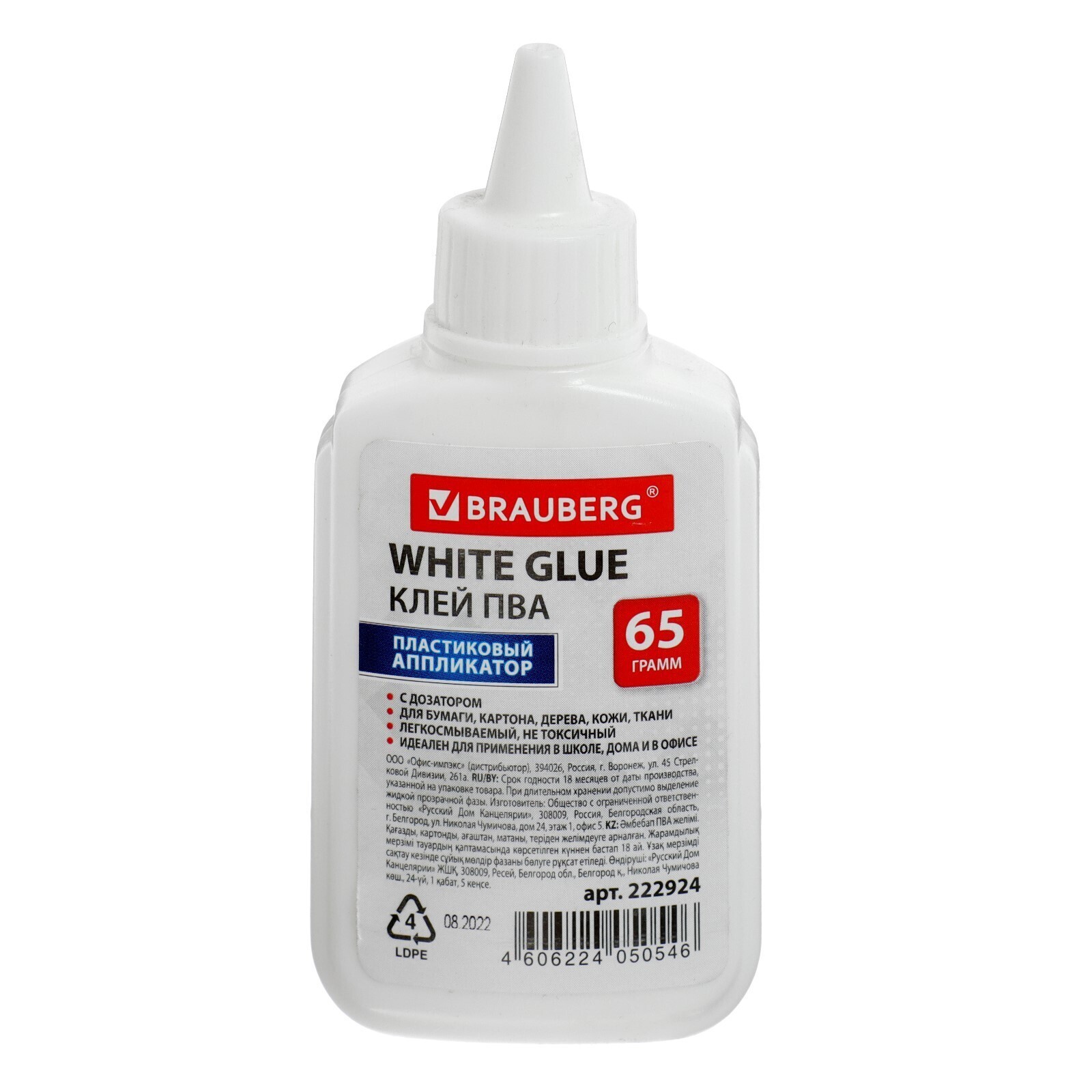 Клей ПВА BRAUBERG предназначен для склеивания бумаги, картона, дерева и кожи. Имеет объем 65 мл. Пластиковый дозатор обеспечивает точное и равномерное нанесение. Обладает устойчивостью к морозу, не токсичен. Наносится тонким слоем, обеспечивая быстрое схватывание поверхностей, а также экономичное расходование. Съемный колпачок предохраняет клей от засыхания. Необходимо взболтать перед применением.