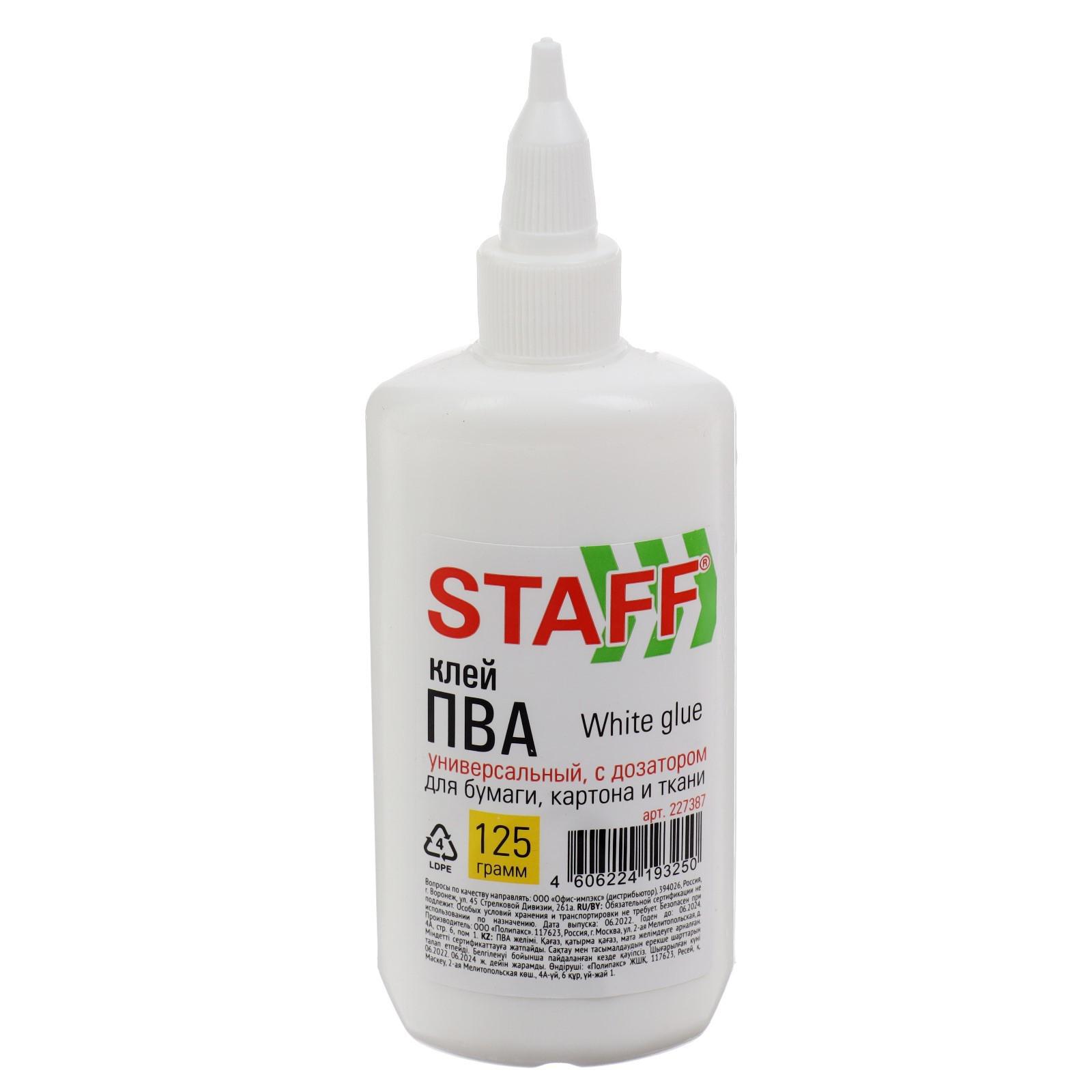 Клей ПВА 125г STAFF "Basic", с дозатором 227387