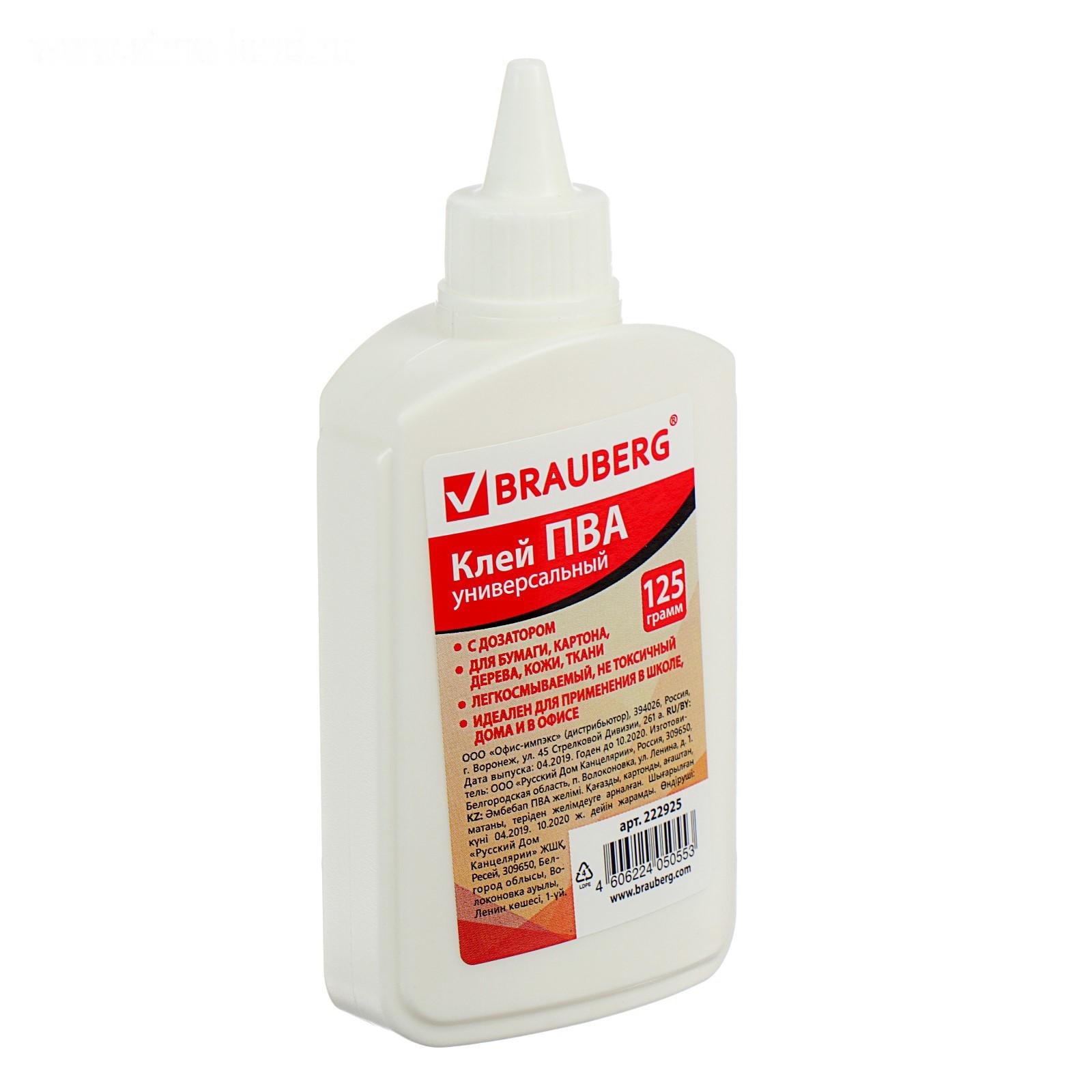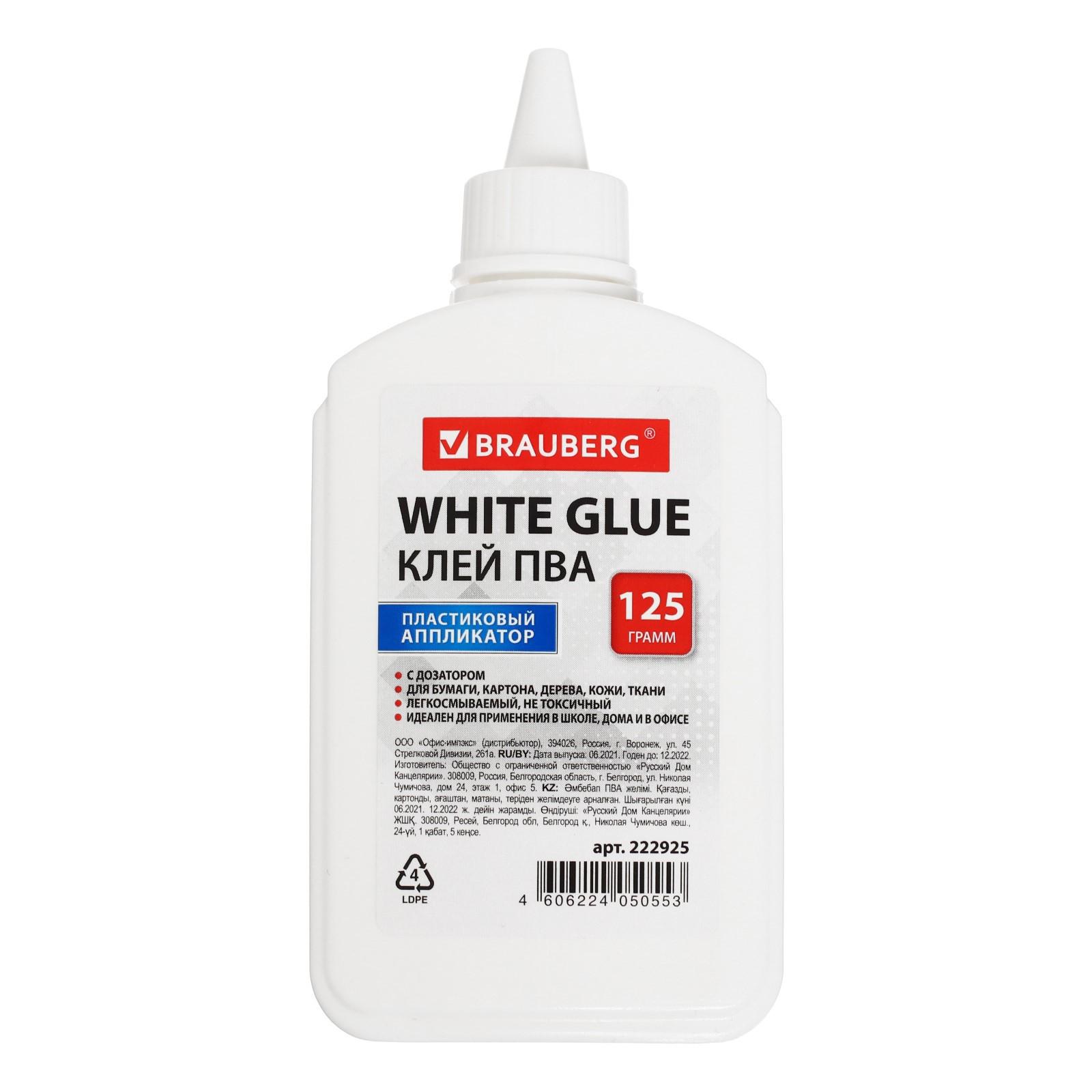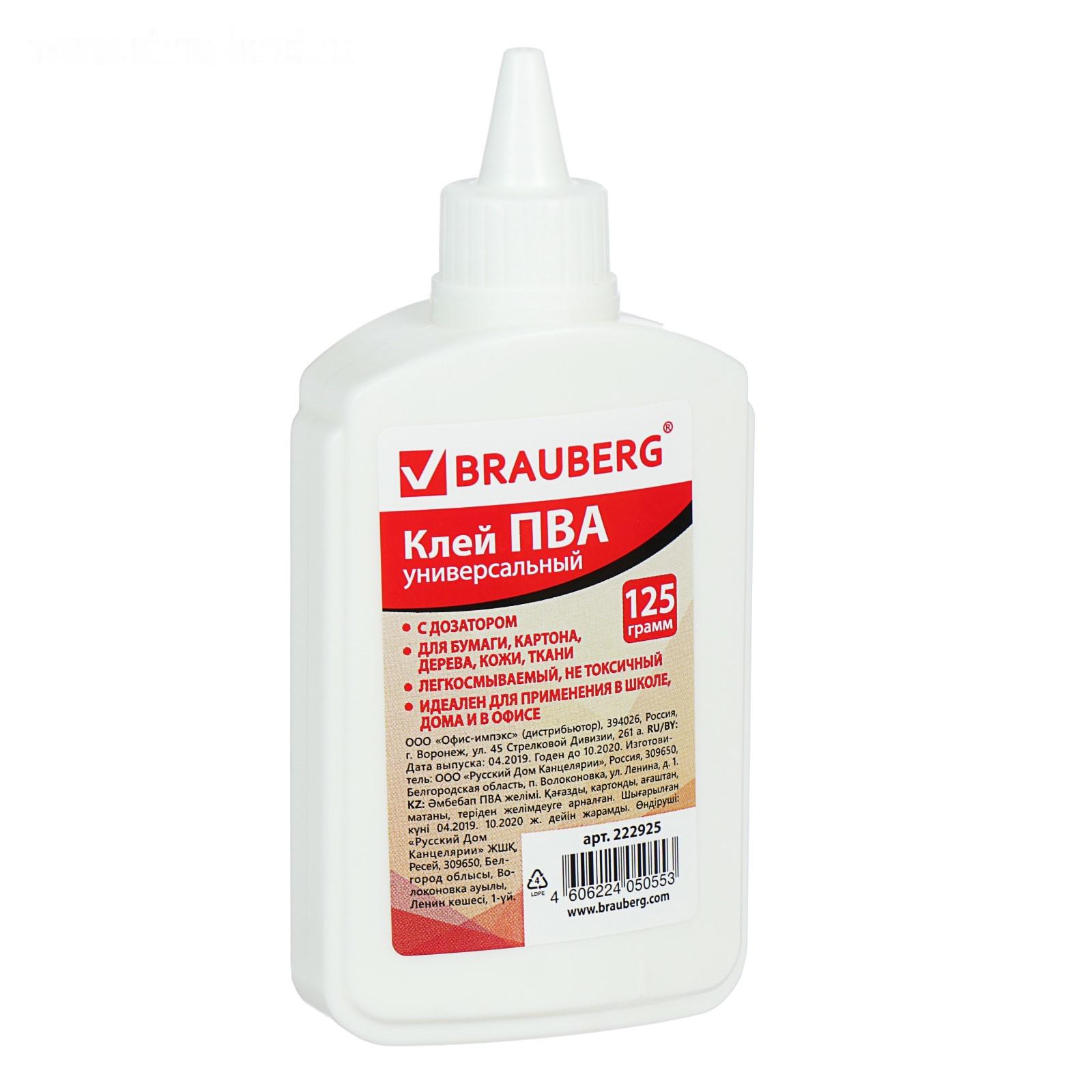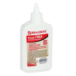 Клей ПВА BRAUBERG предназначен для склеивания бумаги, картона, дерева. Имеет объем 125 мл. Пластиковый дозатор обеспечивает точное и равномерное нанесение. Обладает устойчивостью к морозу, не токсичен. Наносится тонким слоем, обеспечивая быстрое схватывание поверхностей, а также экономичное расходование. Съемный колпачок предохраняет клей от засыхания. Необходимо взболтать перед применением.