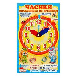 Мини-плакат "Часики, Знакомимся со временем" голубой фон