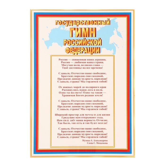 Плакат "Государственный гимн РФ" , 21,6х30,3 см