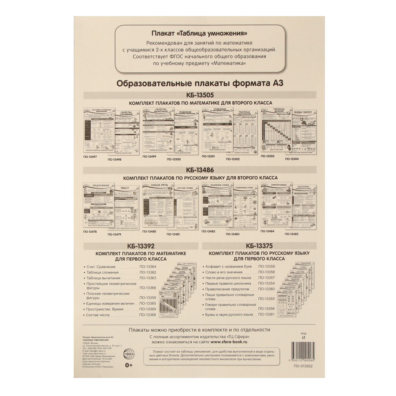 Плакат "Таблица умножения" 34 х 49 см