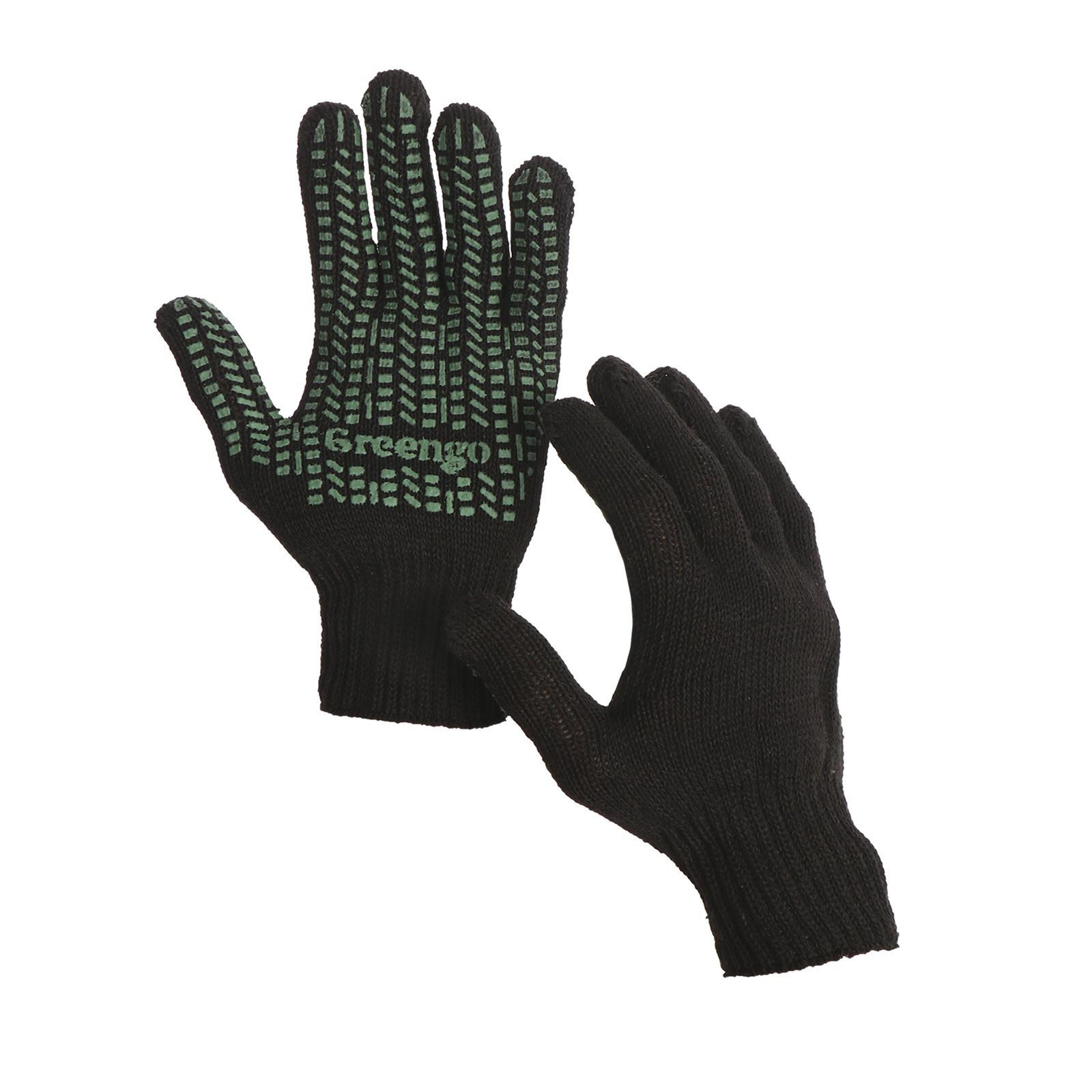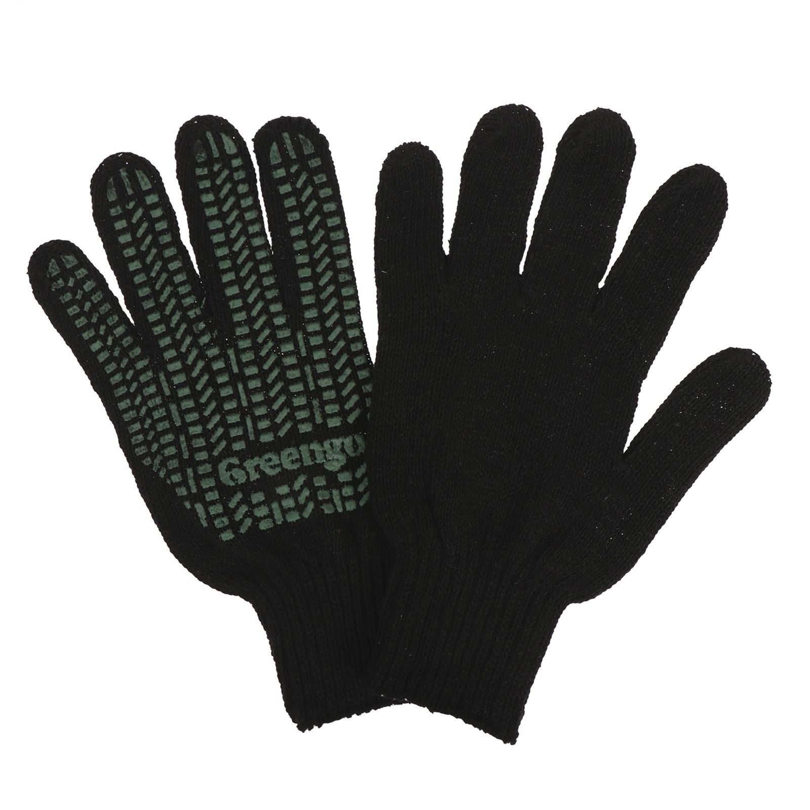 Перчатки, х/б, вязка 7 класс, 6 нитей, размер 10, с ПВХ точками, чёрные, Greengo