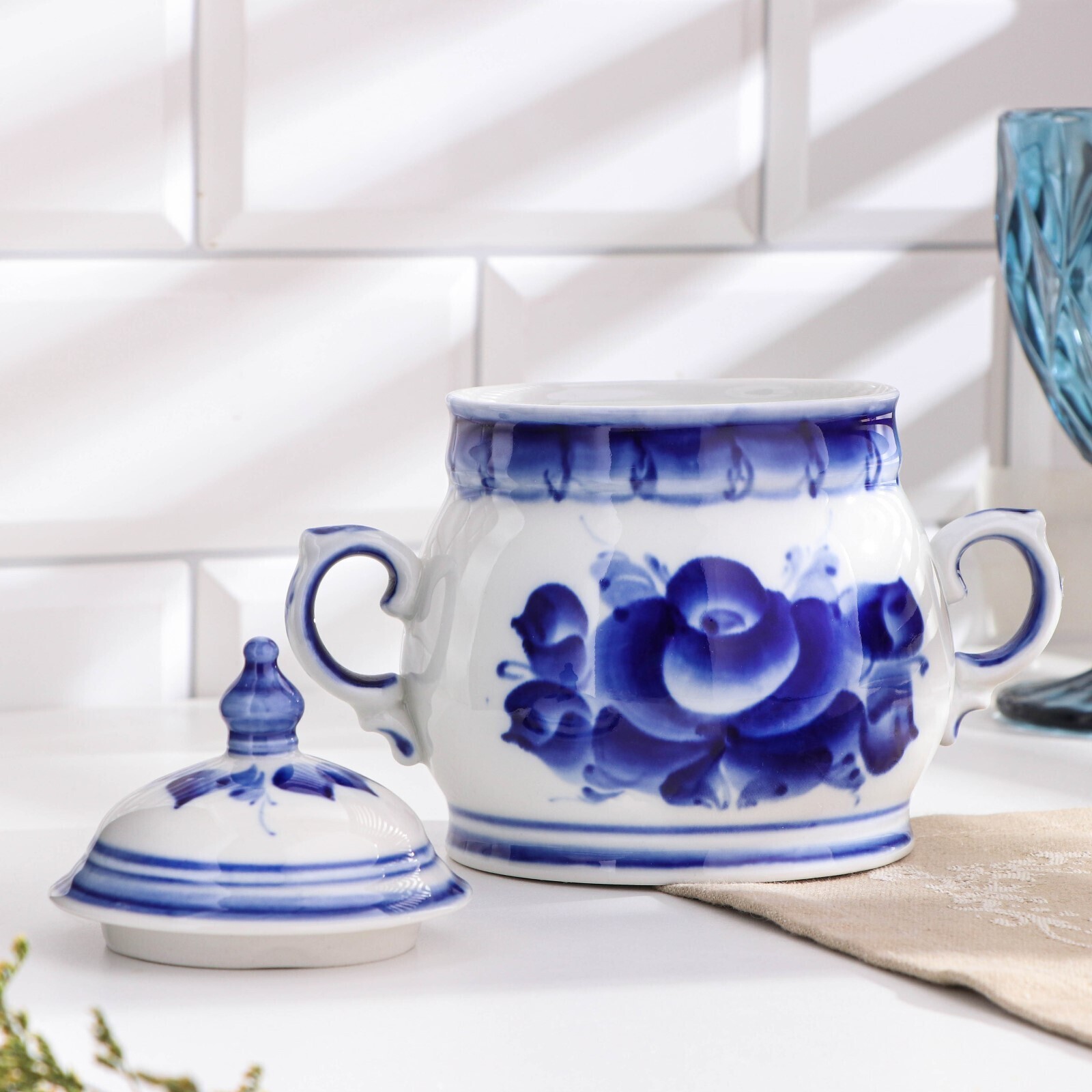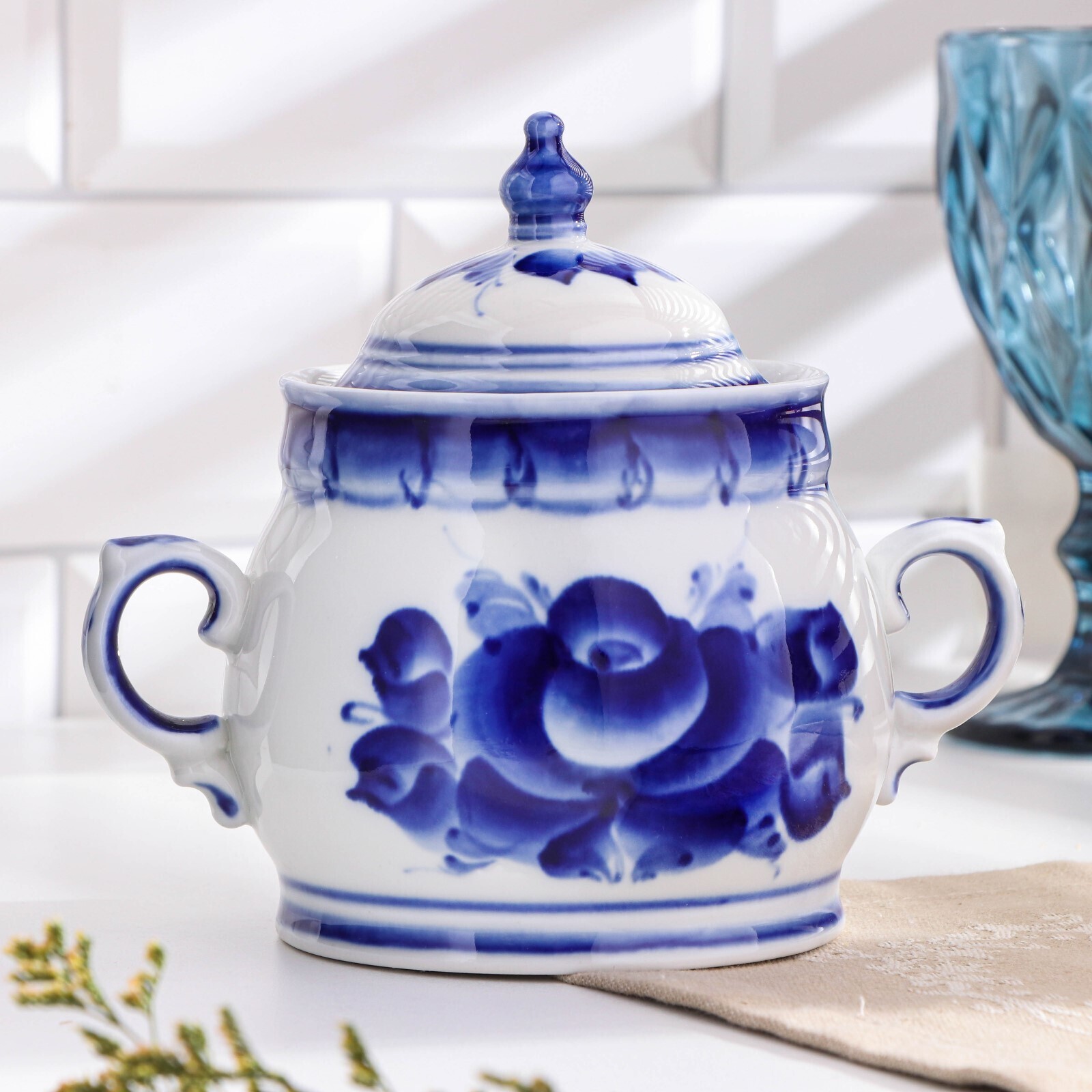 Сахарница "Чародейка", гжель, фарфор, 1с
