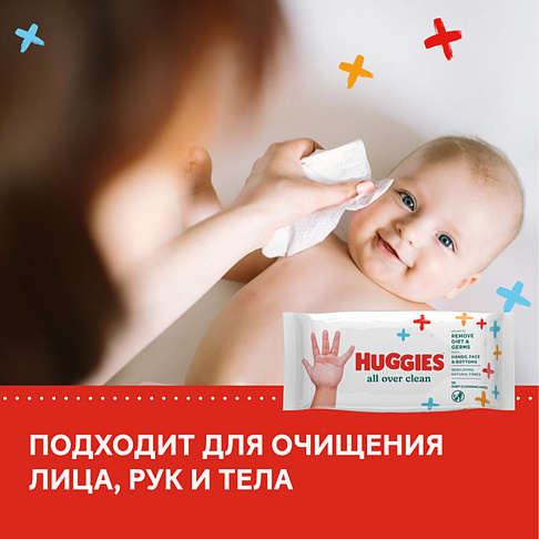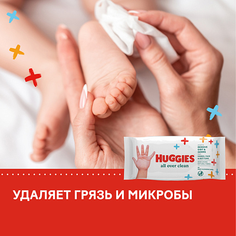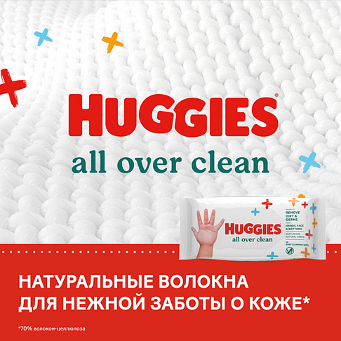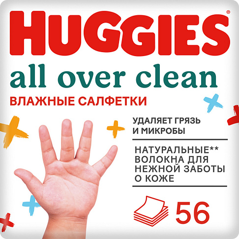 Новые влажные салфетки Huggies All over clean подходят для всех членов семьи, даже самых маленьких. Благодаря натуральной целлюлозе в составе салфеток , они прекрасно удаляют грязь и микробов с рук, лица и тела, не оставляя за собой липкого слоя. Идеальны для прогулок, поездок, путешествий. Салфетки Huggies All over clean созданы по технологии «3 слоя чистоты»: салфетки состоят из 3 плотных впитывающих слоев, содержат натуральные материалы и пропитаны очищенной водой