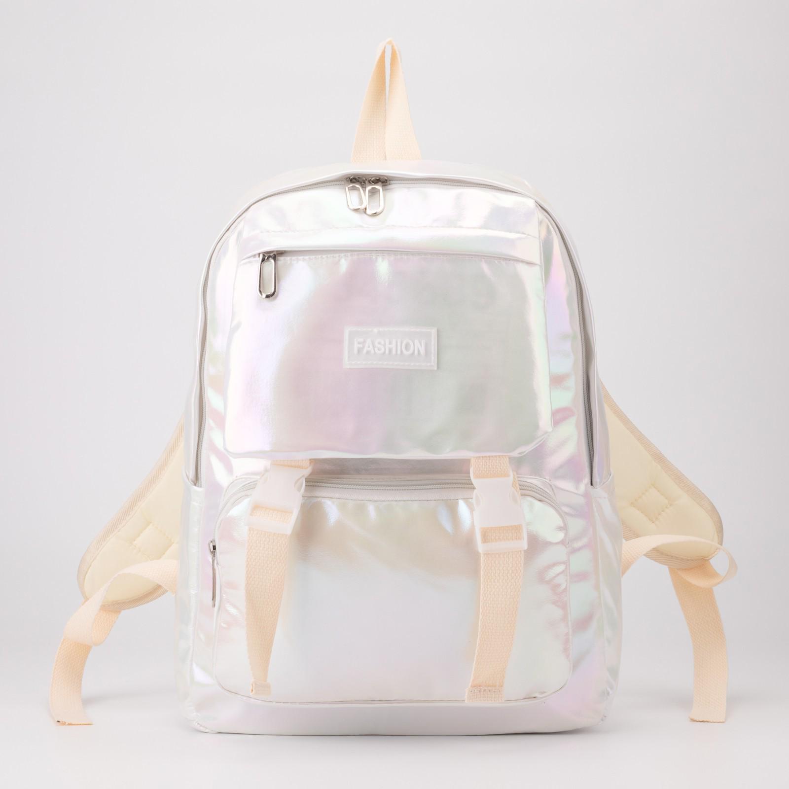 Рюкзак на молнии, 2 наружных кармана, 2 боковых кармана, цвет белый