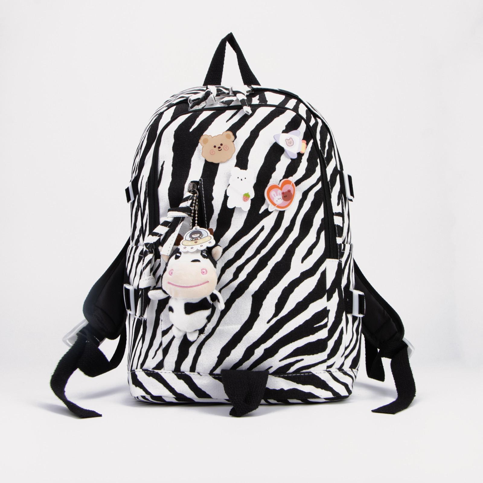 Рюкзак на молнии, наружный карман, цвет чёрно-белый