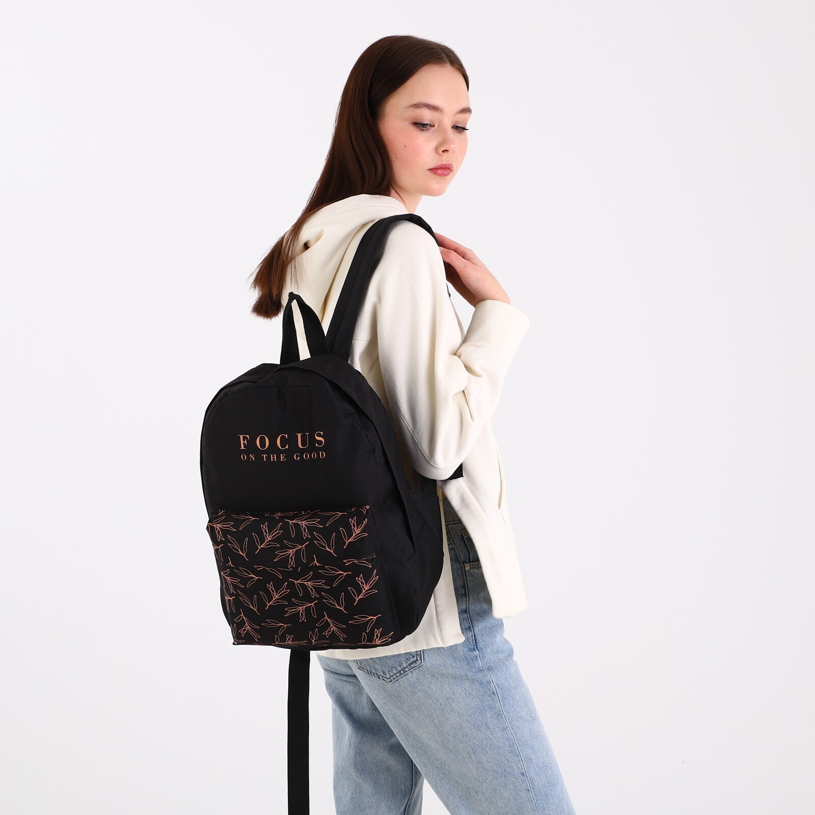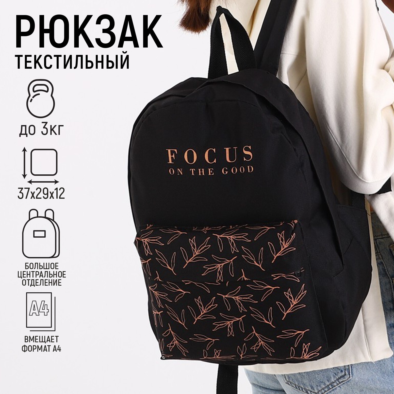 Рюкзак молодёжный Focus on the good, 29х12х37 см, отдел на молнии, наружный карман, цвет чёрный
