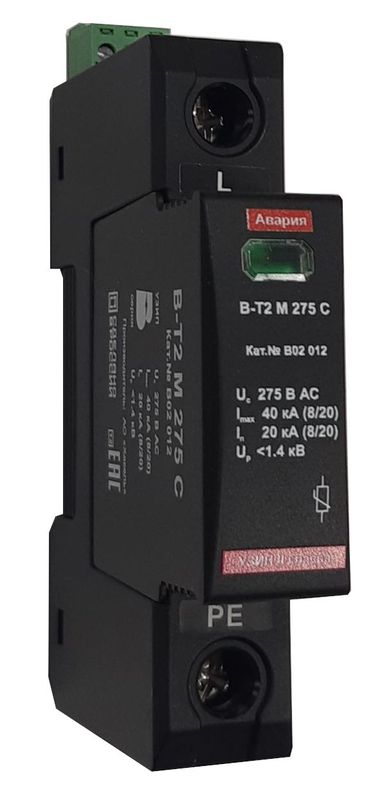 Однополюсное УЗИП класса испытаний II ограничивающего типа серии БЛИЦ-Т. Применяется для защиты силовых цепей переменного и постоянного тока при кабельном или воздушном вводе электропитания в сетях с системами заземления типа TN-S, TN-C, TT и IT. Моноблочный корпус. Uc=275/350 В AC/DC; Imax(8/20) = 50 кА.