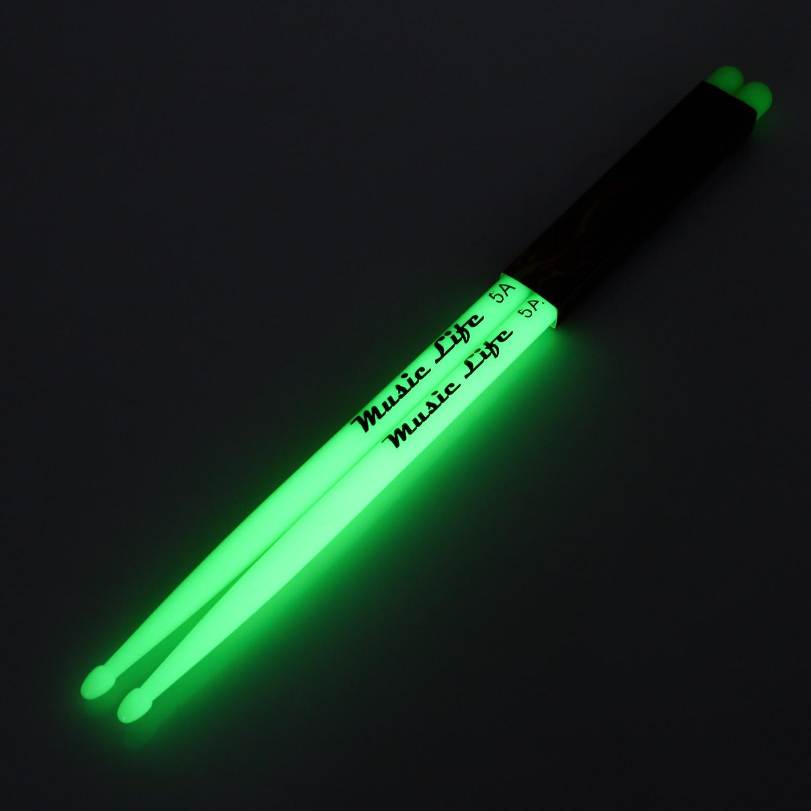 Барабанные палочки Music Life 5А зеленые, светящиеся