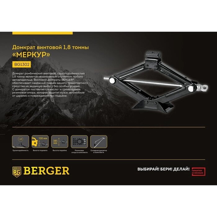 Домкрат ромбический BERGER BG1302, универсальный, винтовой, 1,8т, 100-385 мм