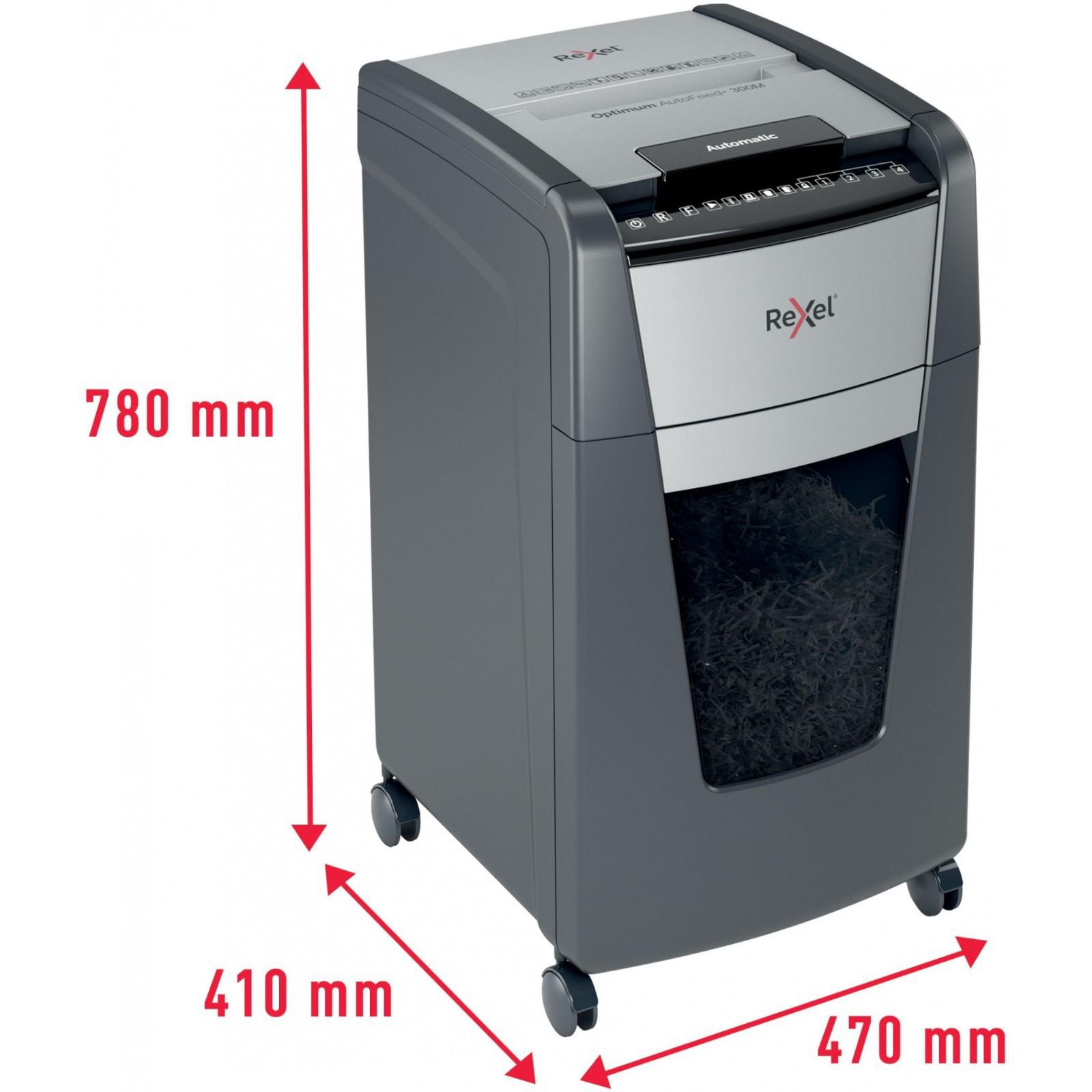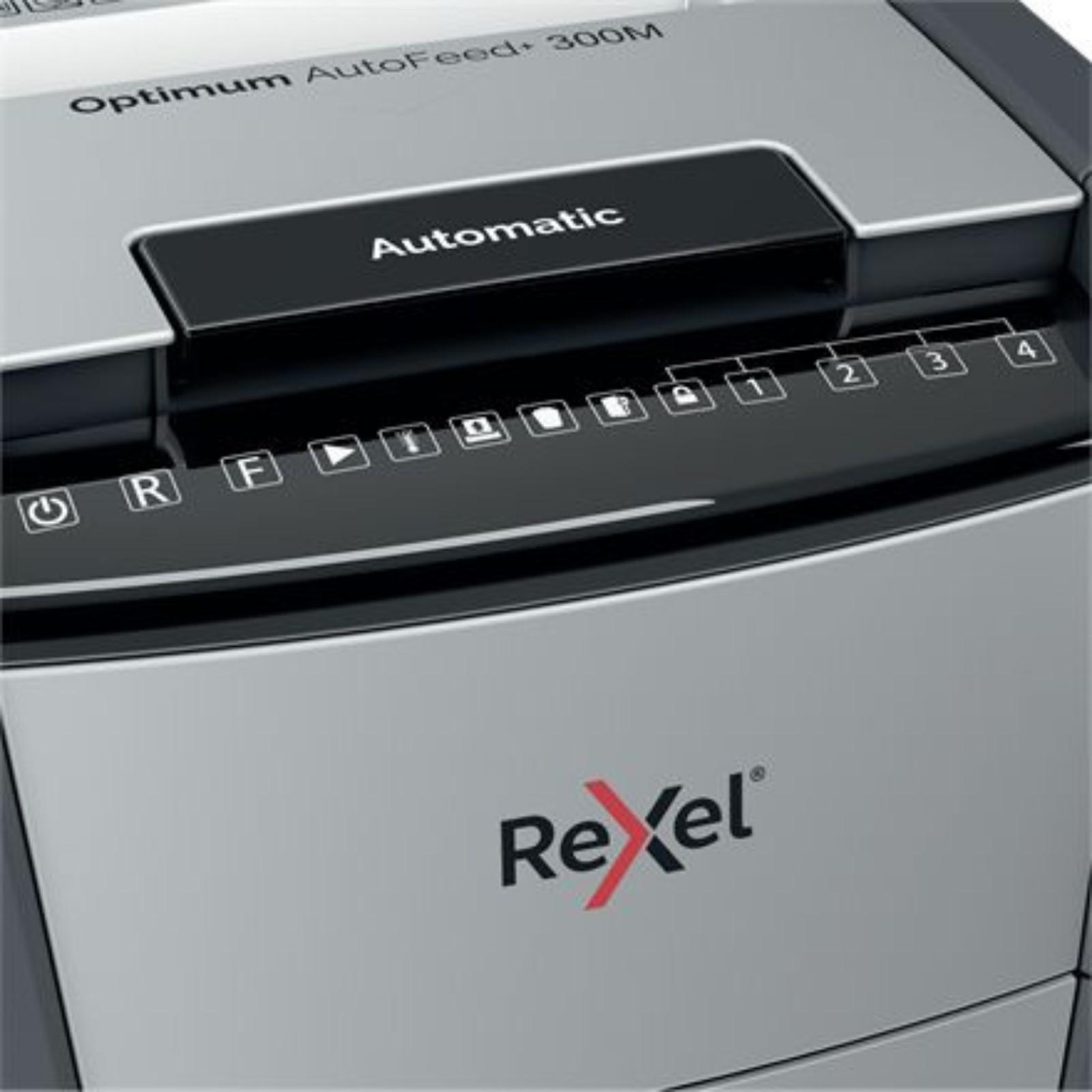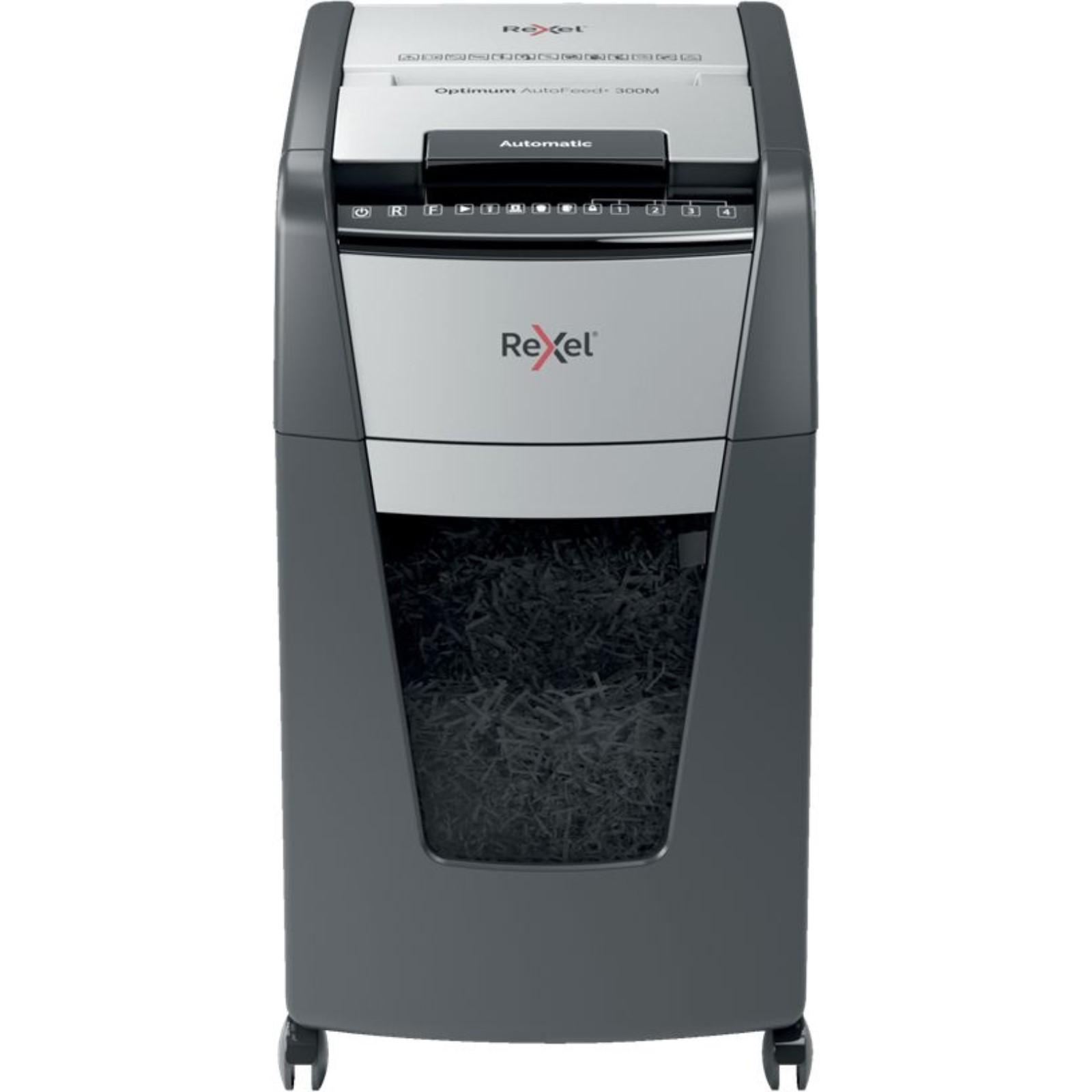 Шредер Rexel Optimum AutoFeed 300M, фрагменты 2х15мм, 300 листов, скрепки, скобы, пл.карты