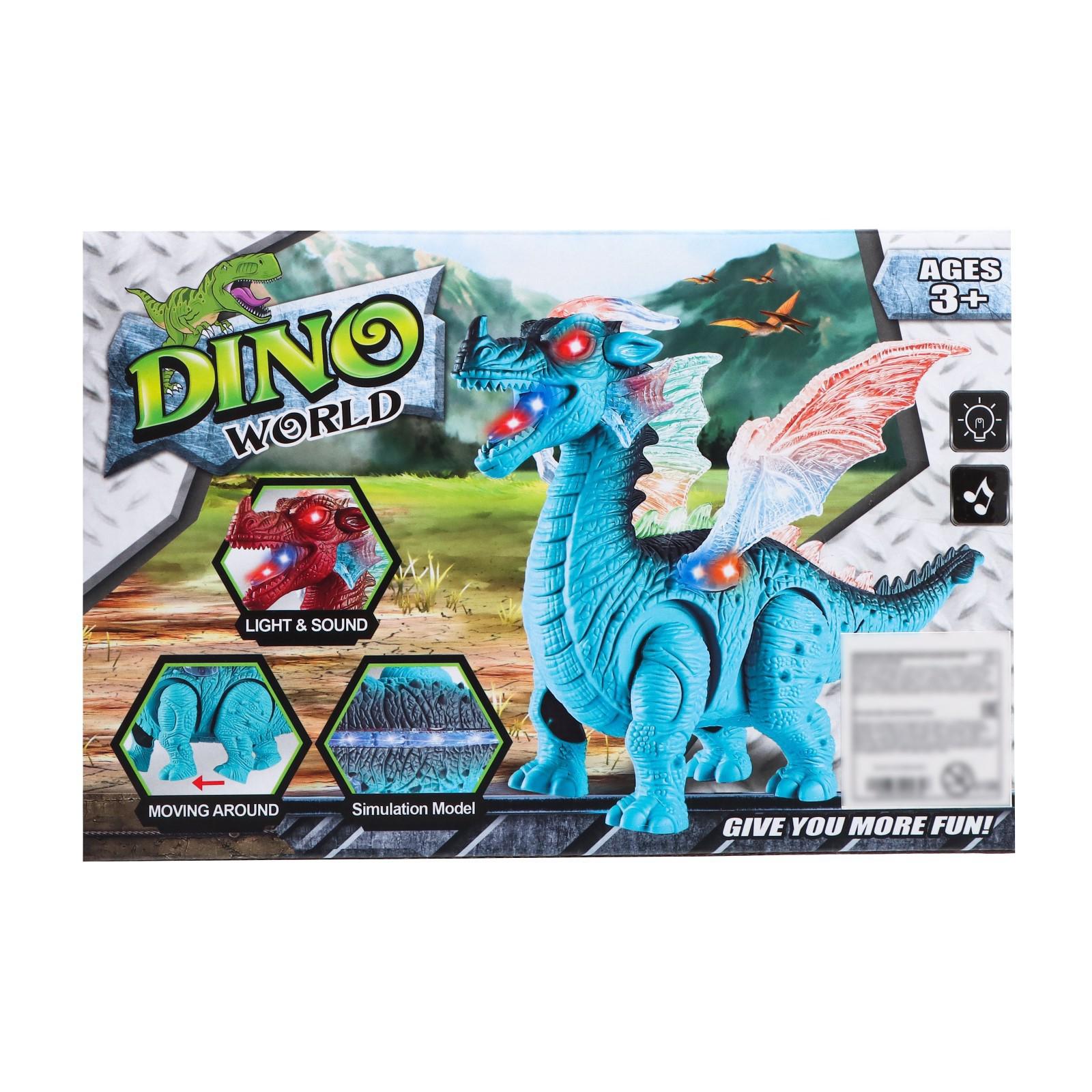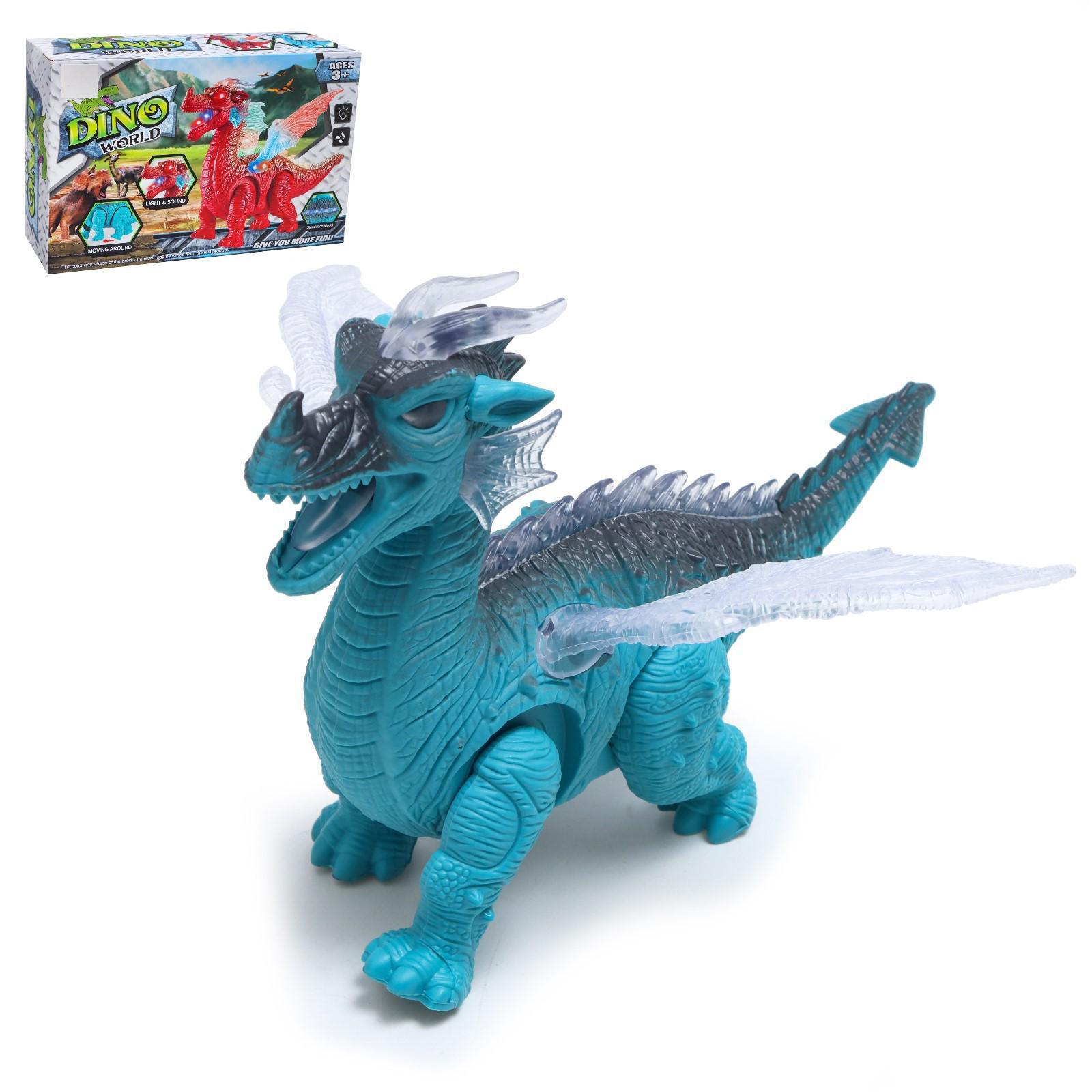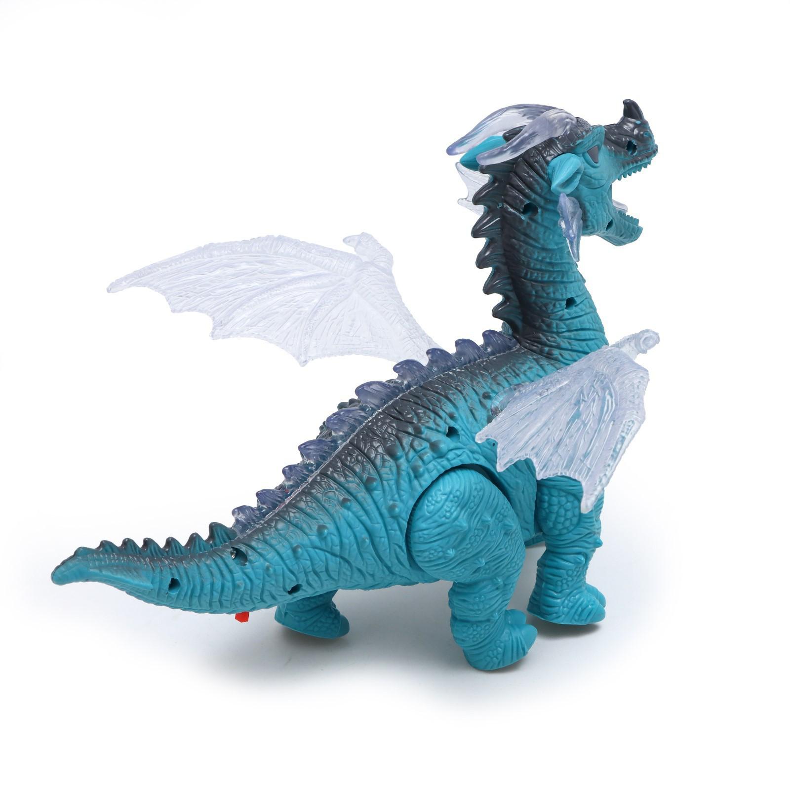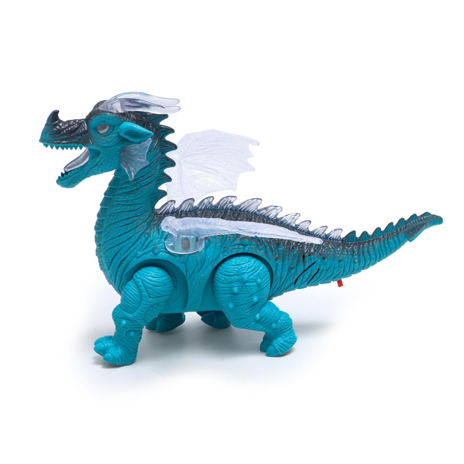 Динозавр «Дракон», работает от батареек, световые и звуковые эффекты, цвет голубой