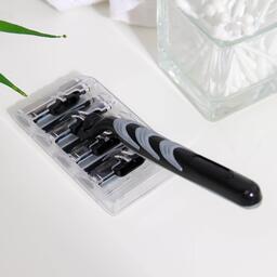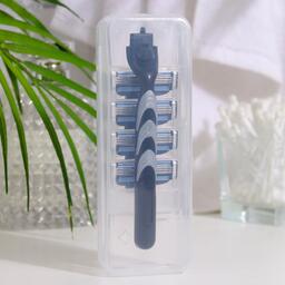 Бритвенный станок с тремя лезвиями и увлажняющей полоской, в наборе 4 сменных кассеты лезвий.