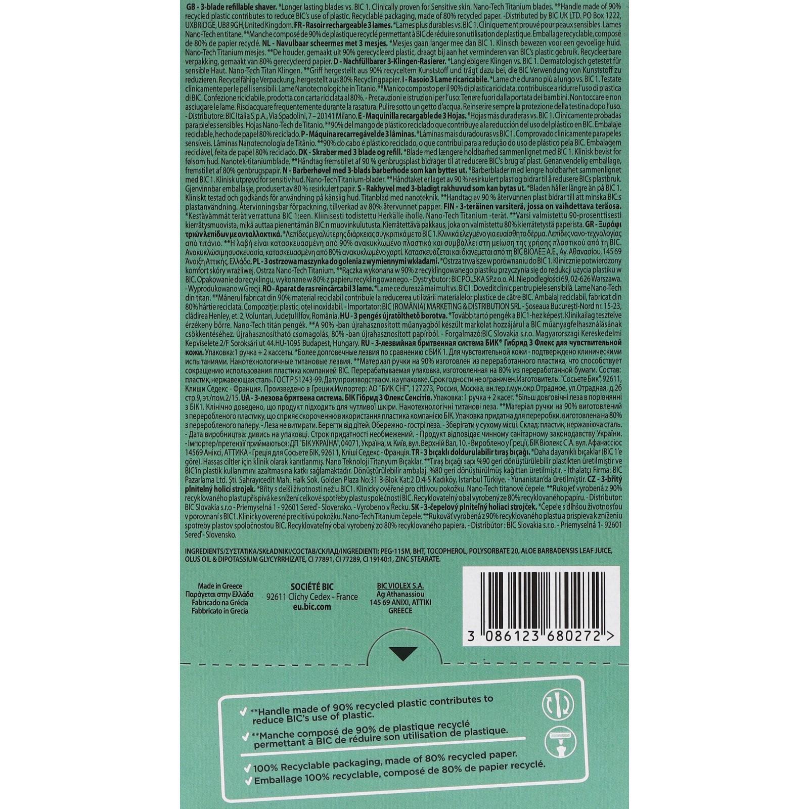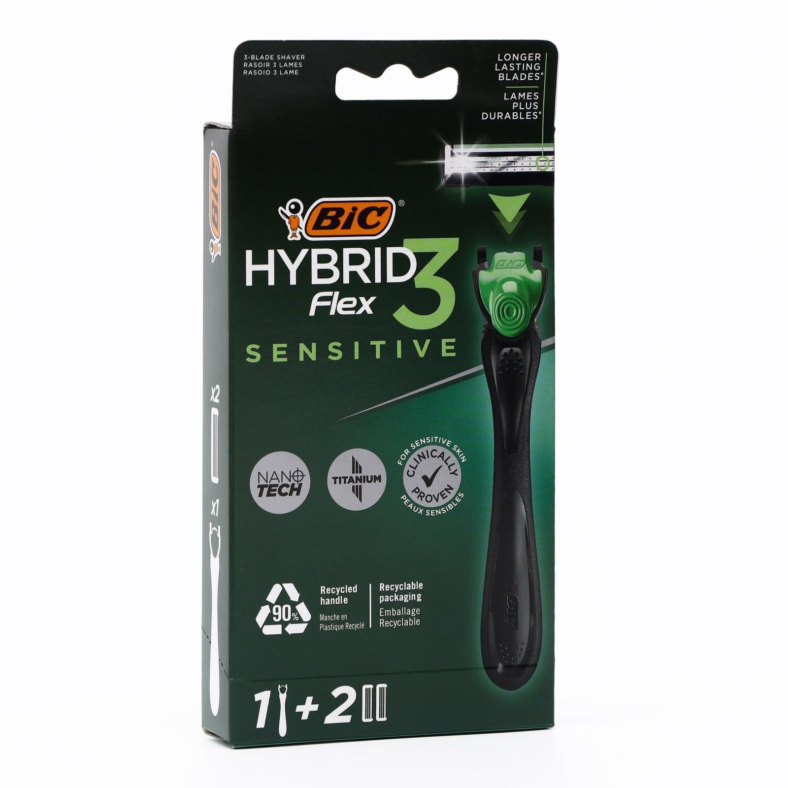 Станок для бритья мужской BIC Hybrid 3 Flex Sensitive + 2 сменные кассеты с 3 лезвиями, 1 шт.