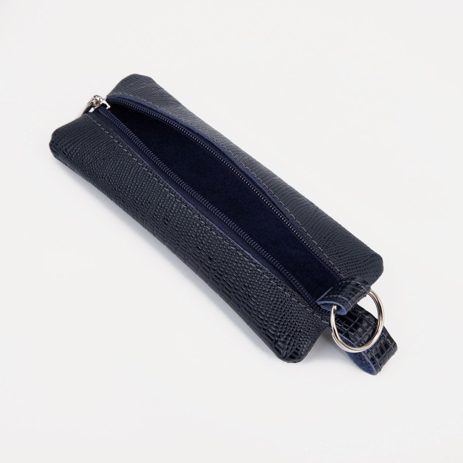 Ключница 15*1*6 см, на молнии, кольцо, Ящерица, синий