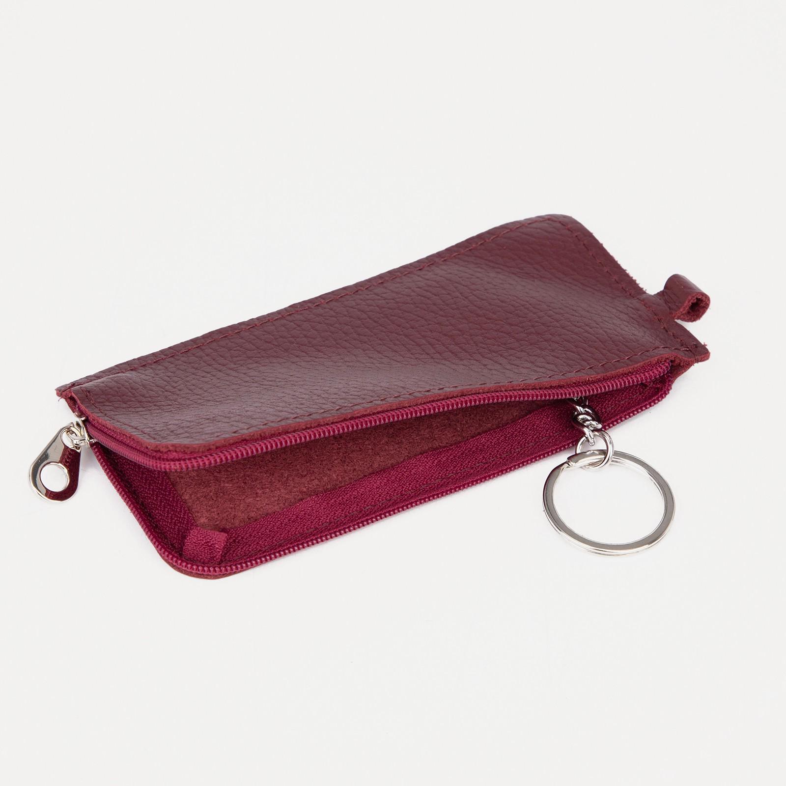 Ключница на молнии, длина 14 см, металлическое кольцо, цвет бордовый