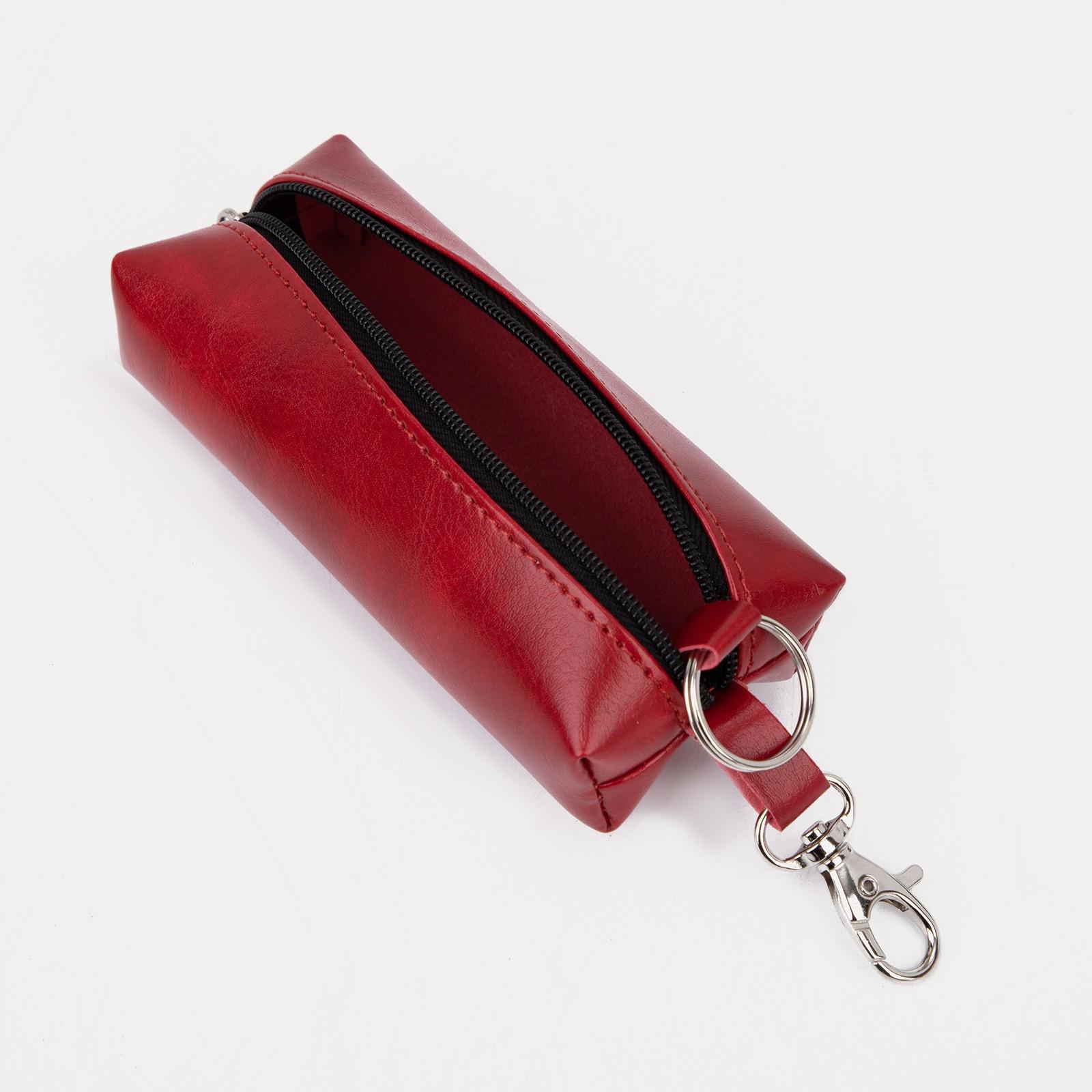 Ключница на молнии, длина 13 см, кольцо, карабин, цвет красный
