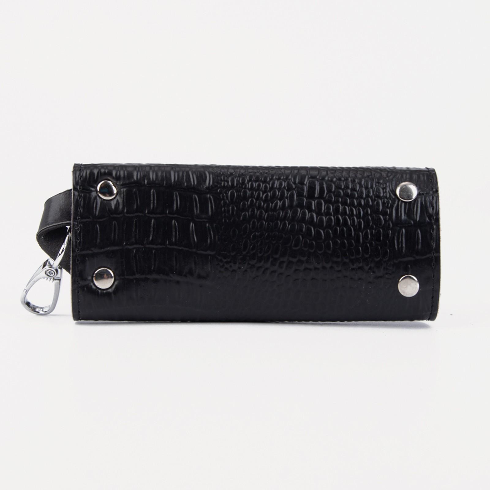 Ключница на кнопке, длина 13.5 см, 7 карабинов, цвет чёрный