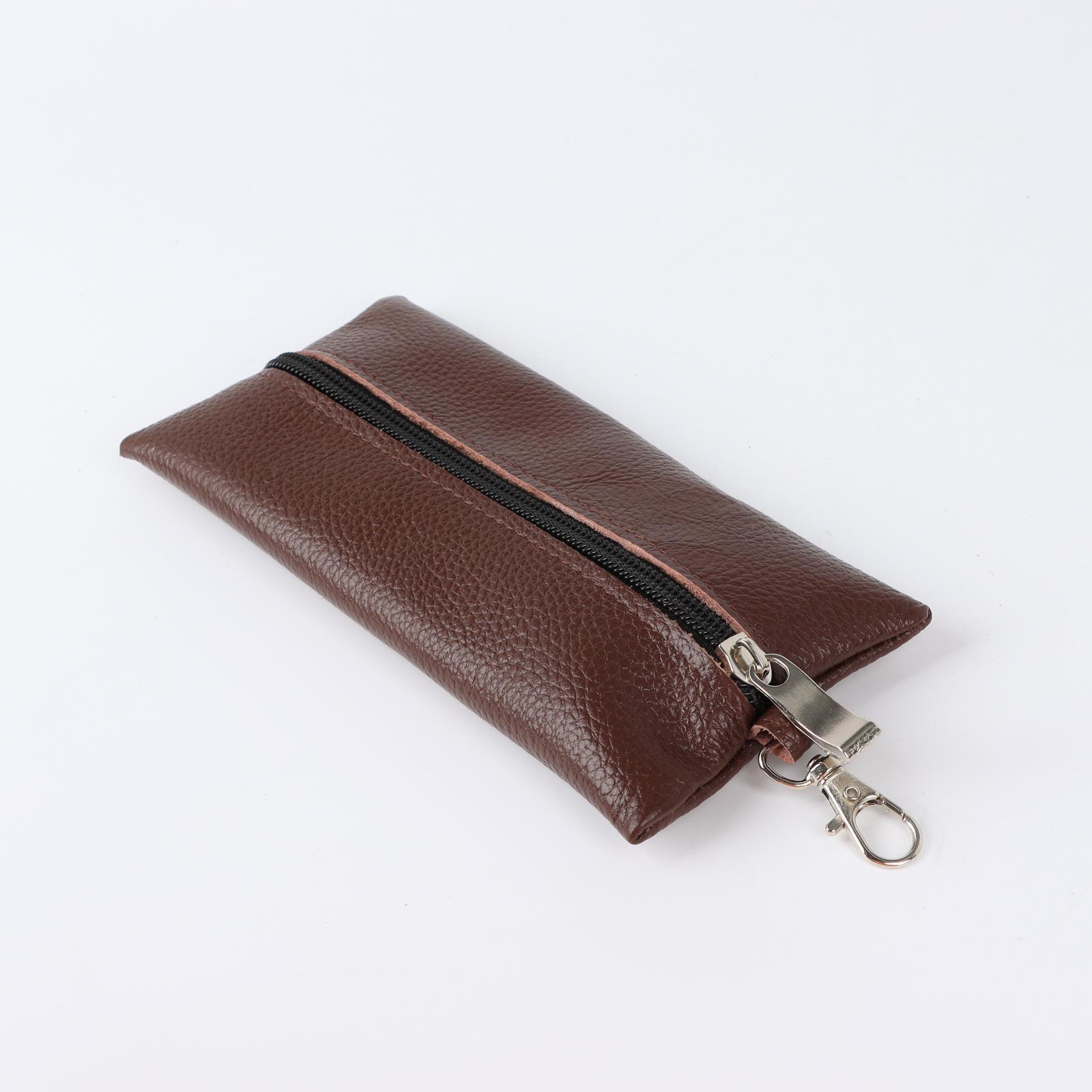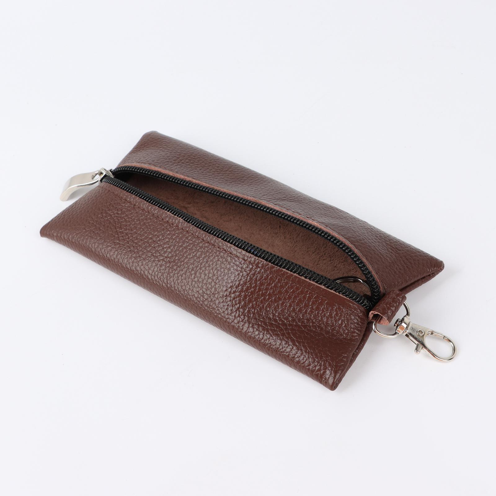Ключница на молнии, длина 17 см, металлическое кольцо, цвет светло-коричневый