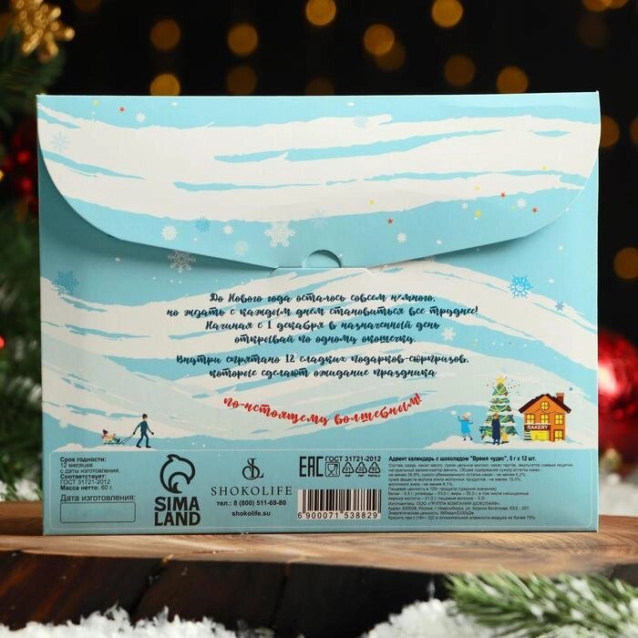 Адвент календарь с шоколадом "Время чудес", 12х5 г