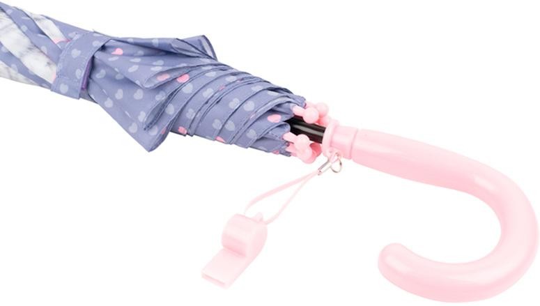 Легка та ергономічна. Пластикова ручка-гак – комфортна для дитячих долоньок, ідеально лягає в руку. З її допомогою парасольку зручно підвішувати під час зберігання. Щоб дитина не укололася, спиці захищені круглими пластиковими наконечниками; для практичності – точково пришиті до тканини.