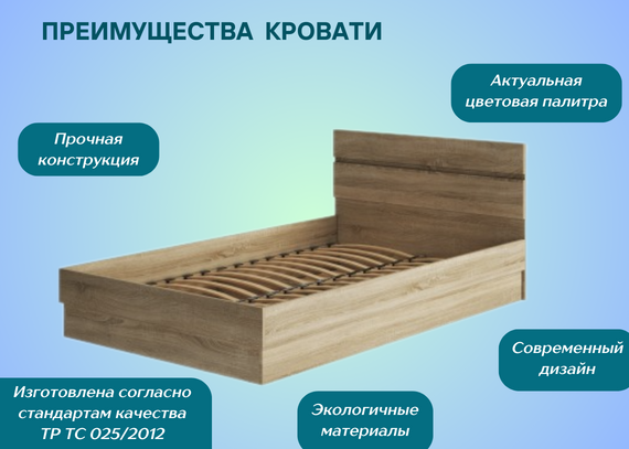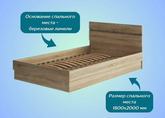 Прочная конструкция . Кровать выполнена из высококачественного ЛДСП, обладает прочным каркасом и оснащена надежной фурнитурой. Всё это гарантирует прочность и долговечность конструкции.