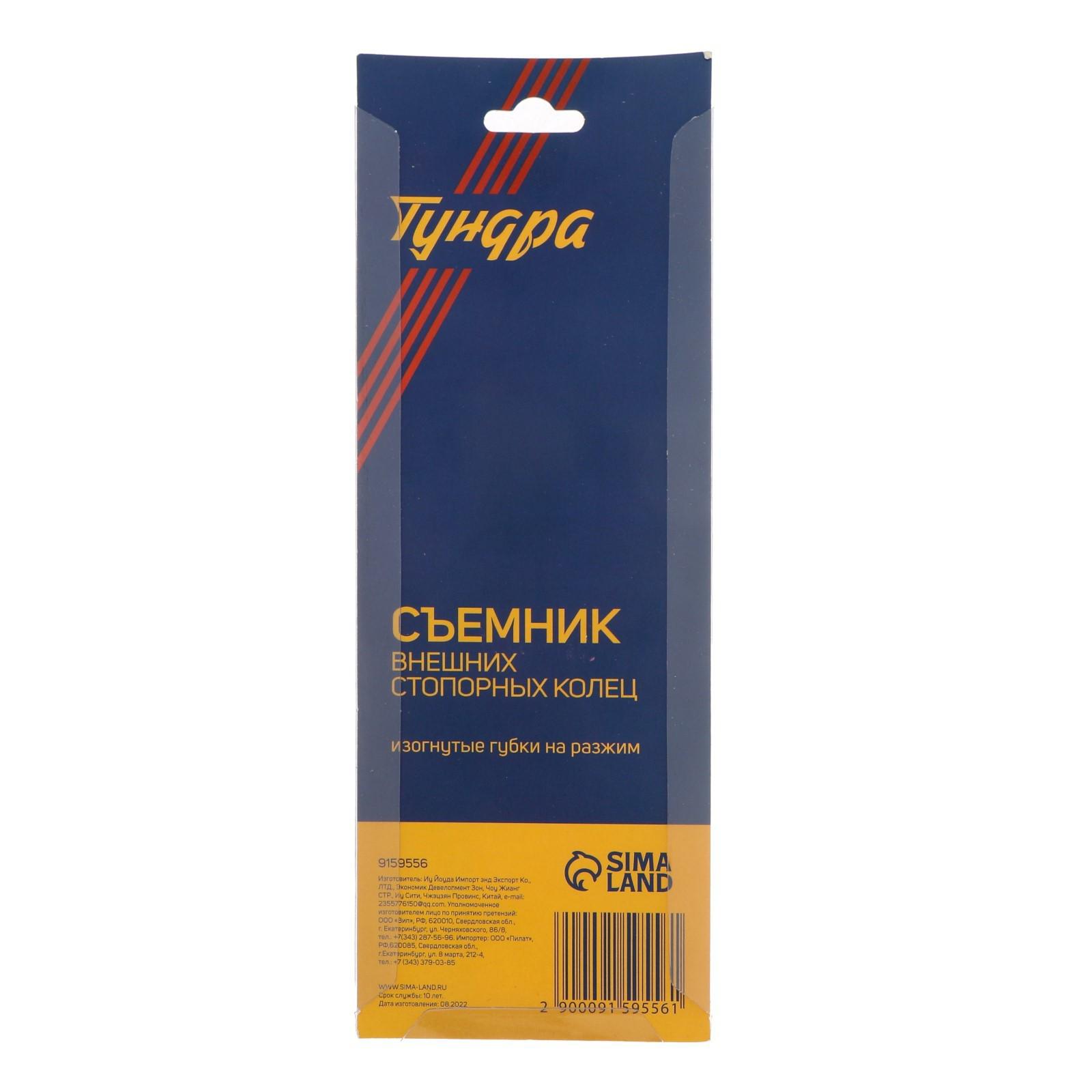 Съемник внешних стопорных колец ТУНДРА, изогнутые губки на разжим, 150 мм