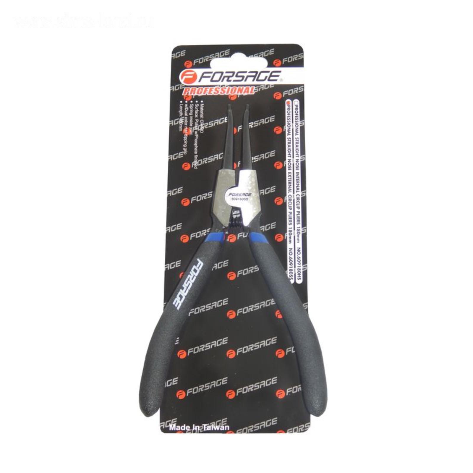 Съемник стопорных колец Forsage F-609180SS, прямой на разжим, L-180 мм, в блистере