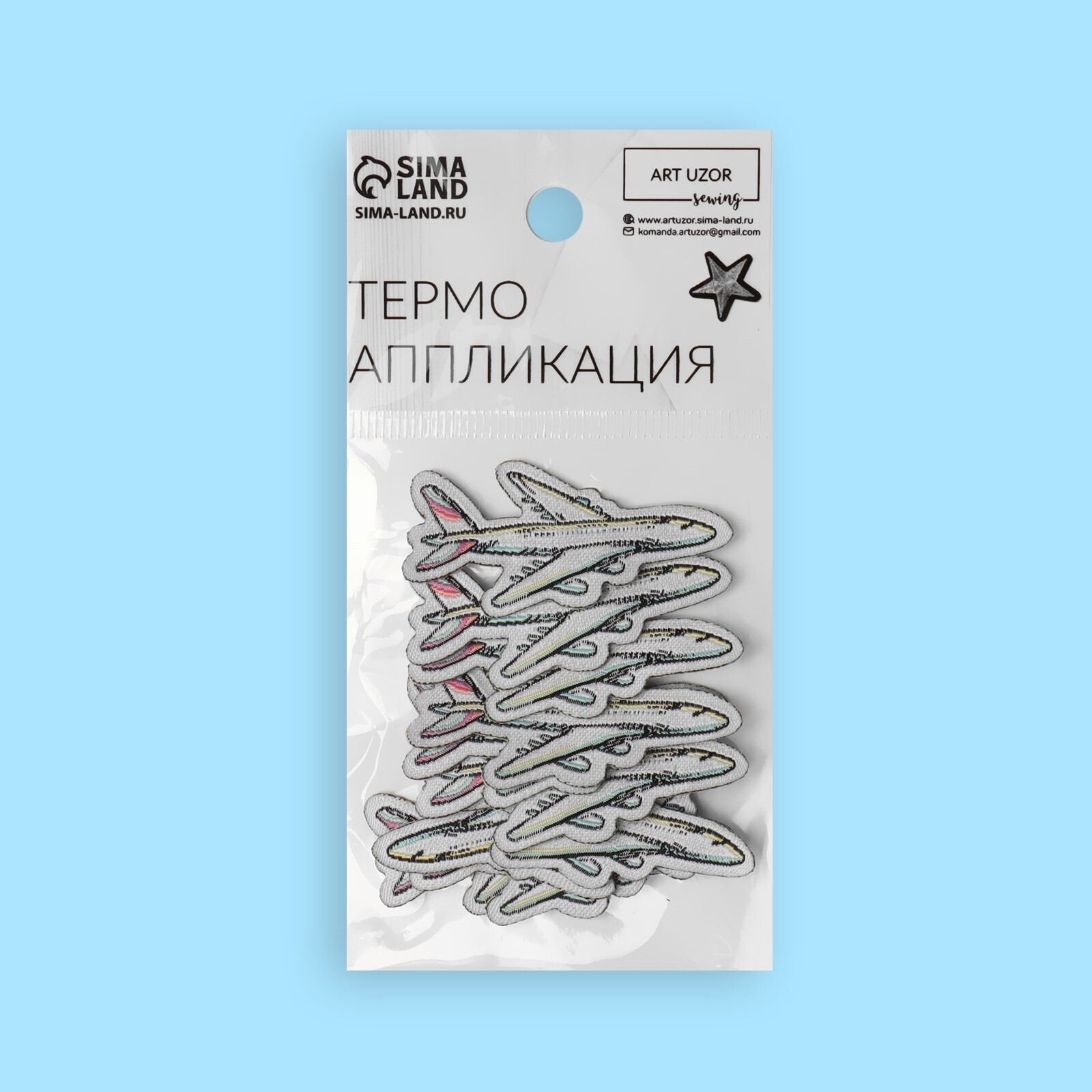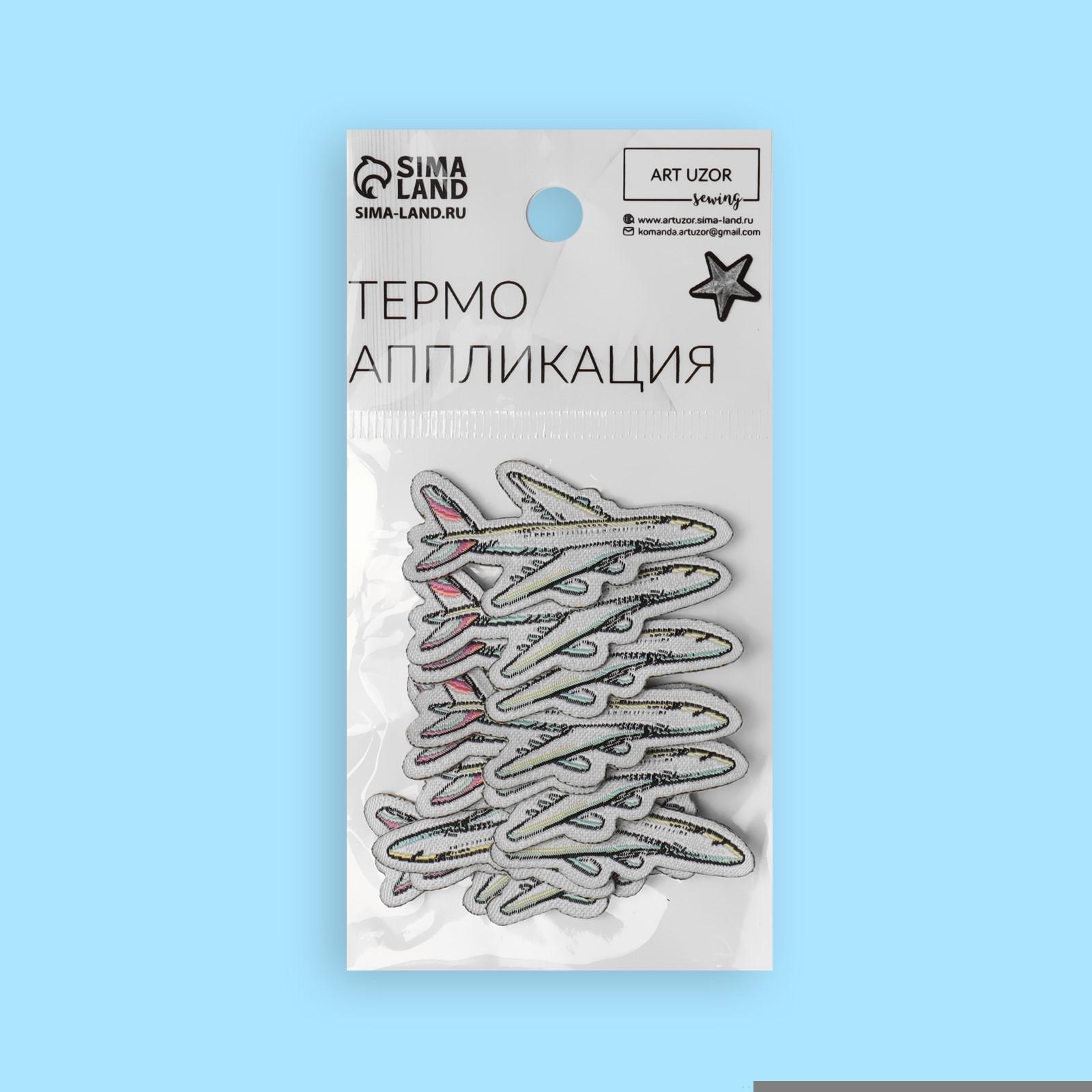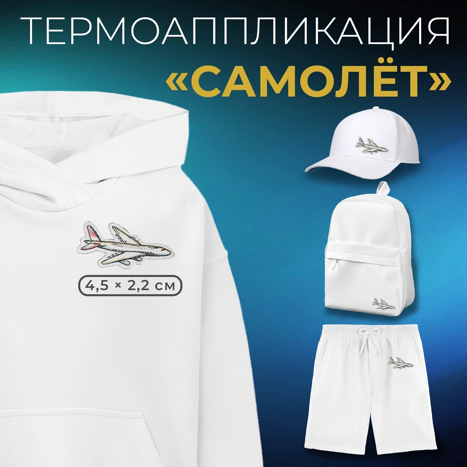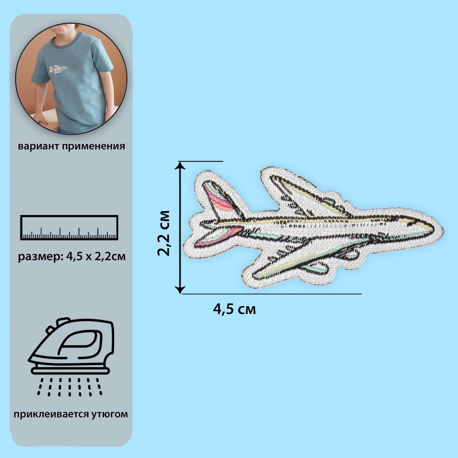 Термоаппликация «Самолёт», 4,5 × 2,2 см, цвет белый