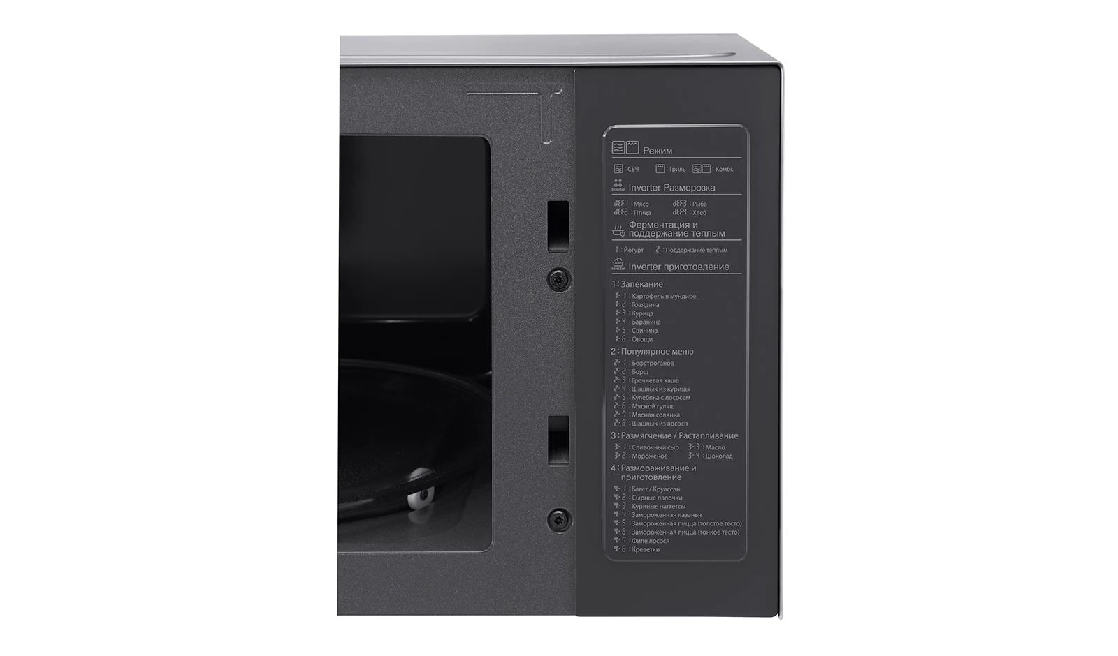 Добавьте вашей кухне изысканность с помощью утонченности минимализма микроволновой печи LG MH6565CIR. Стильная, удобная, продуманная до мелочей в микроволновая печь LG MH6565CIR c технологией Smart Inverter (Умный инвентор). Благодаря высокой мощности в 1000 Вт и точности управления продукты размораживаются, подогреваются и готовятся более эффективно, а блюда порадуют вас разнообразием. Точный контроль мощности микроволн обеспечивает более быстрый и равномерный подогрев блюд для получения лучшего вкуса. Система регулирования мощности микроволн обеспечивает более равномерное и быстрое размораживание продуктов, сохраняя их вкус и структуру. Высокая мощность в 1000 Вт позволяет готовить любимые блюда за меньшее время по сравнению с традиционными микроволновыми печами. Режимы позволят готовить разнообразно и приятно удивлять себя и своих близких. Функции запекания, обжаривания, поддерживания заданной температуры и приготовления йогурта теперь доступны в одном устройстве. Кварцевый гриль сокращает время приготовления пищи. Комбинация функции гриля и микроволн позволяет получать блюда, сочные внутри и c аппетитной хрустящей корочкой снаружи. 6-угольная опора предотвращает проливание жидкости из емкости, стоящей на краю поворотного столика, и позволяет вам готовить без лишних хлопот. Внутренняя LED-подсветка белого цвета в 3 раза ярче, чем в традиционных моделях, что помогает контролировать процесс приготовления пищи без открывания. дверцы микроволновой печи и обеспечивает меньшее потребление электроэнергии.