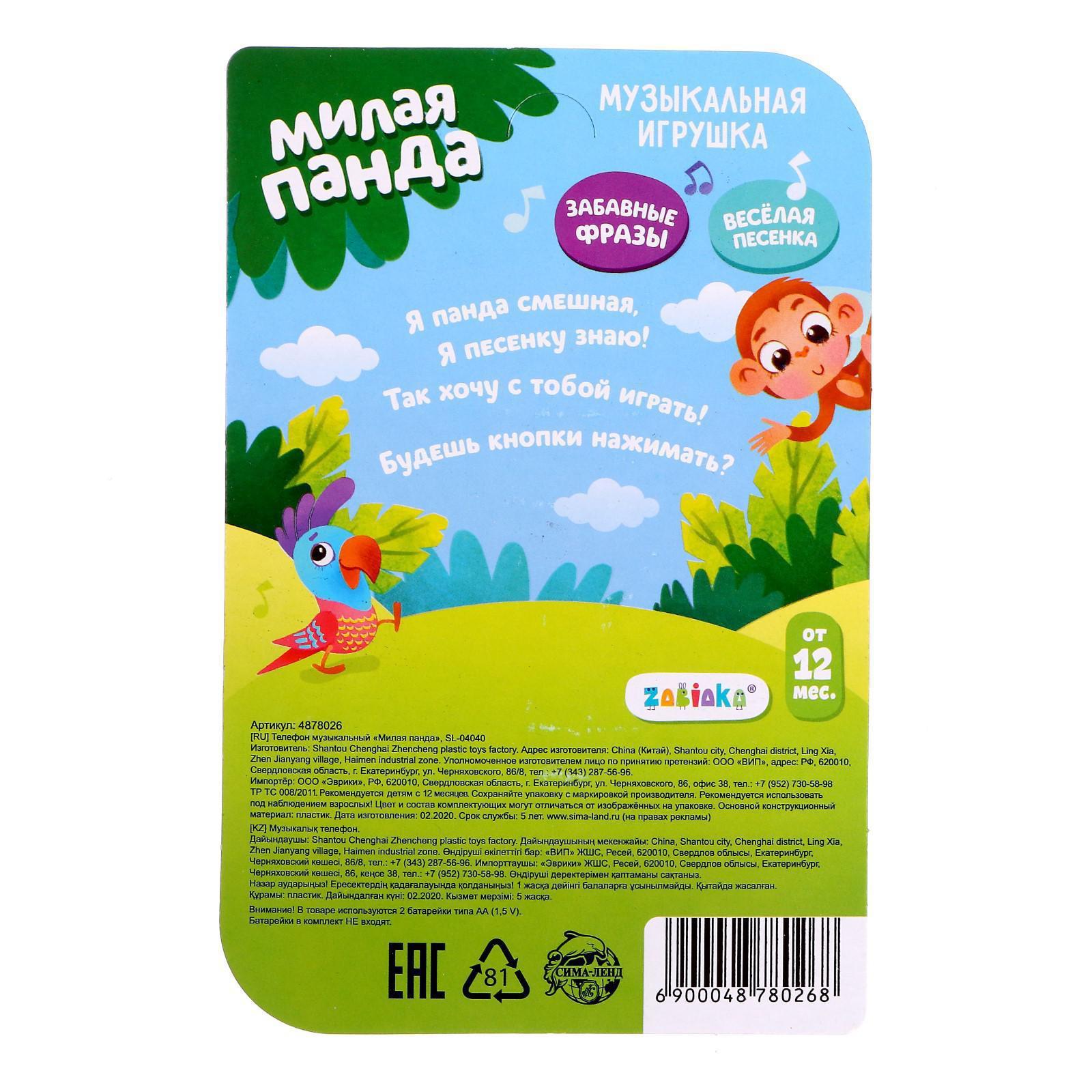 Музыкальная игрушка «Милая панда», звук