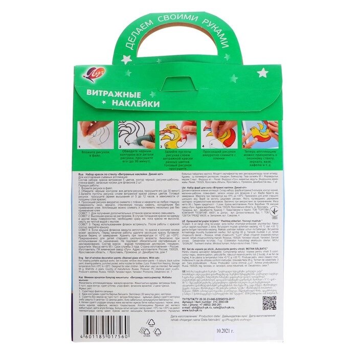 Набор красок по стеклу "Витражные наклейки. Дикий кот"