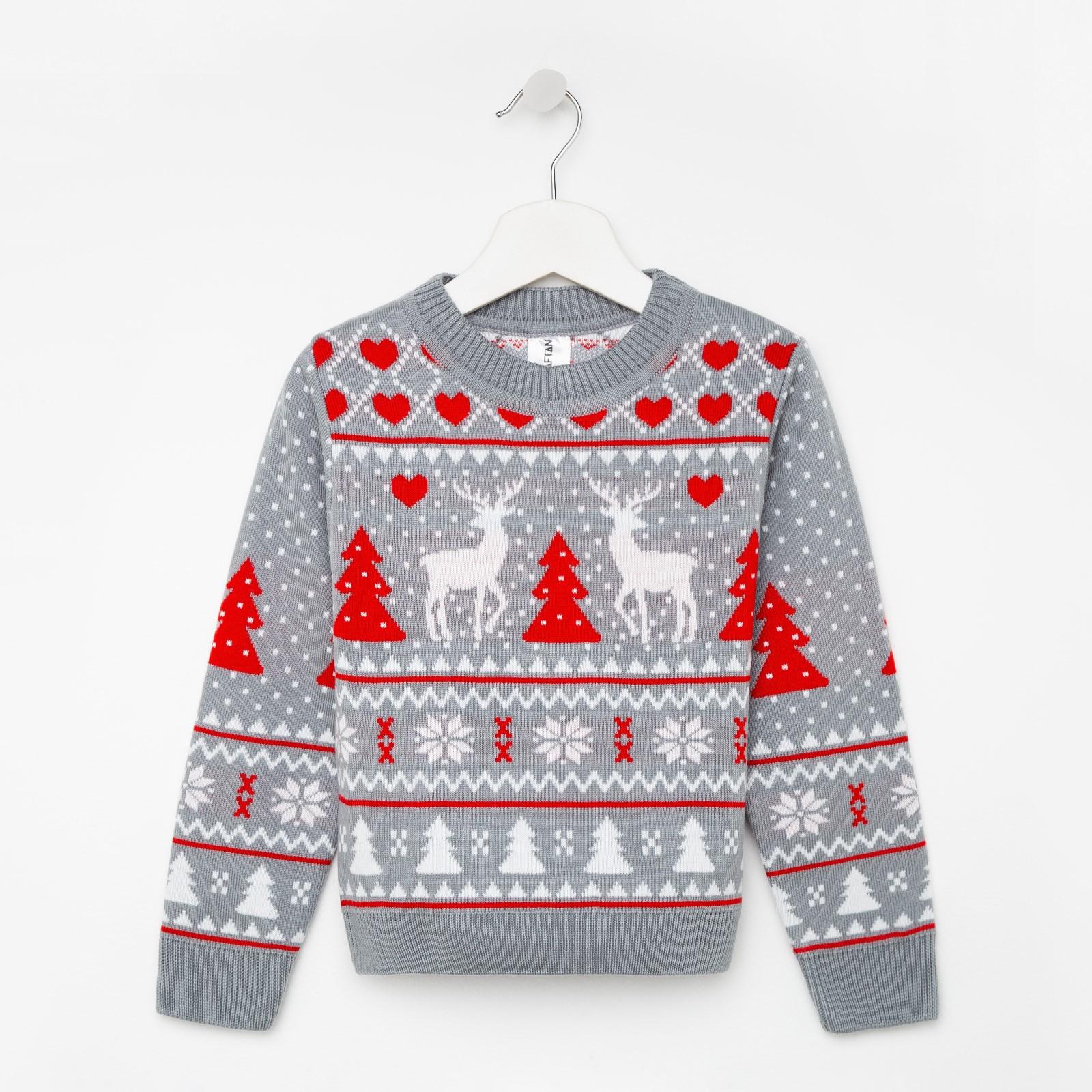 Джемпер вязанный детский KAFTAN "Новогодний" р.32, (110-116 см), серый