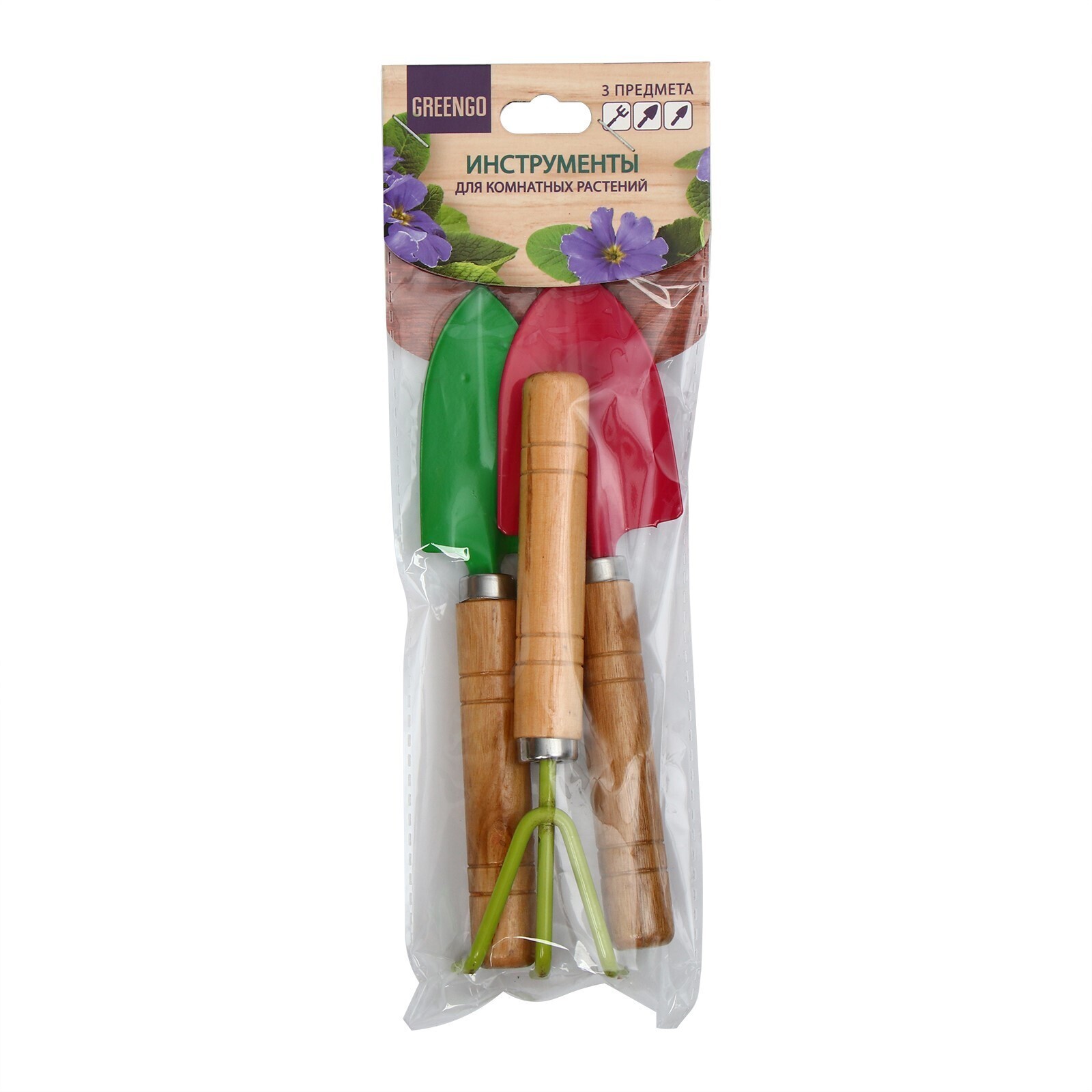 Набор садового инструмента, 3 предмета: рыхлитель, совок, грабли, длина 20 см