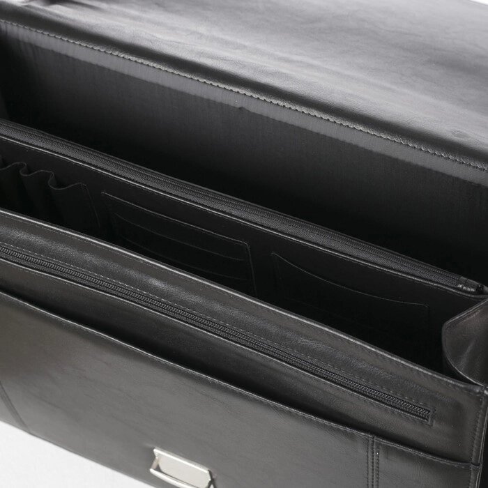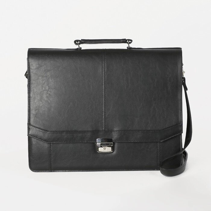 Сумка-портфель мужская, 3 отдела на молнии, длинный ремень, цвет чёрный