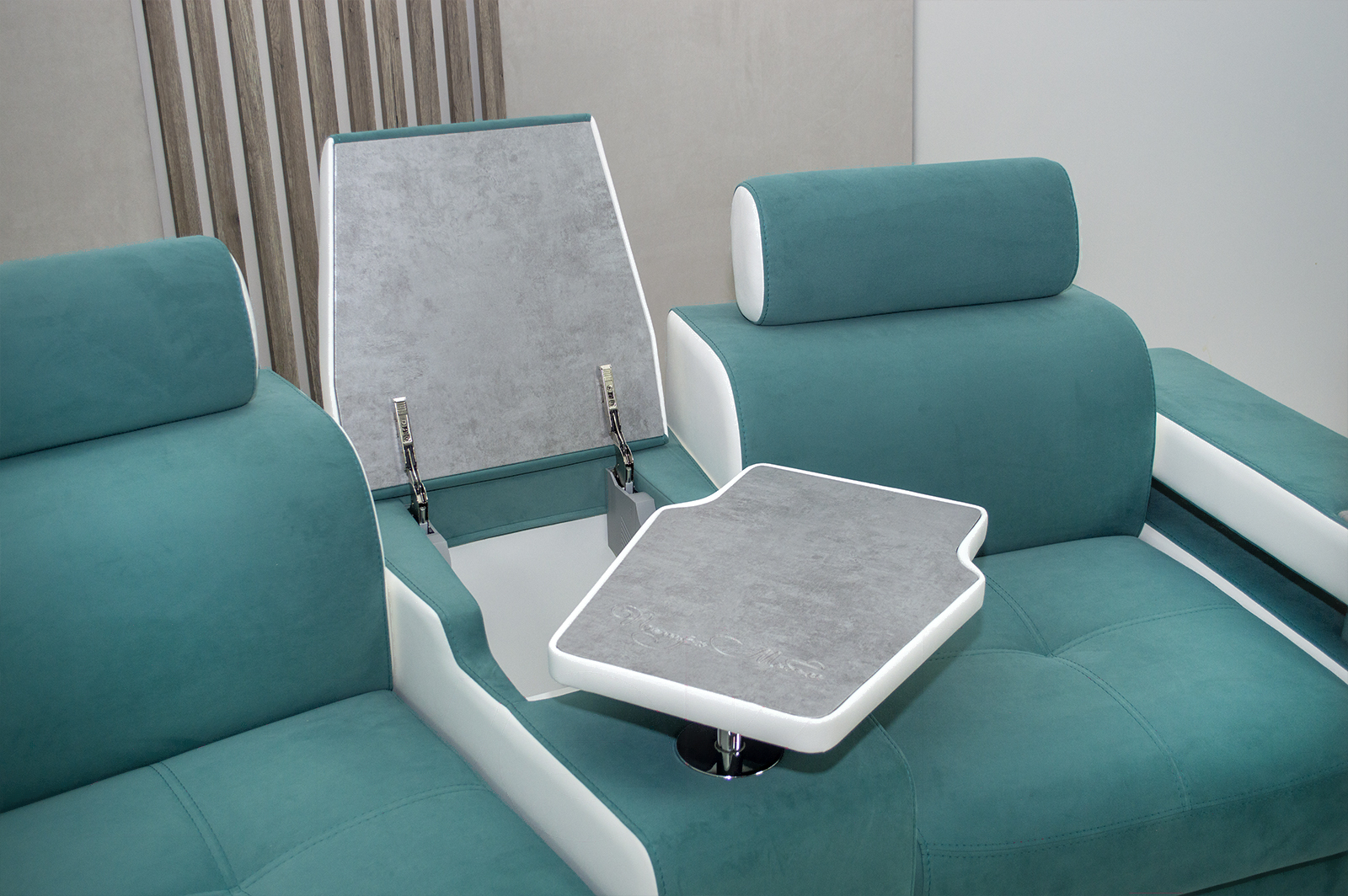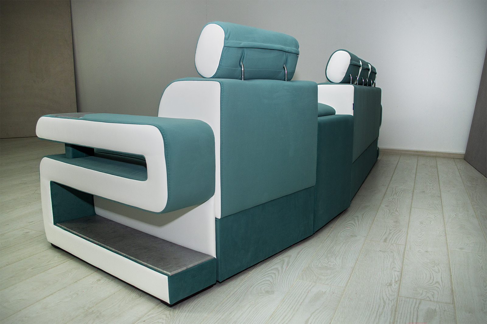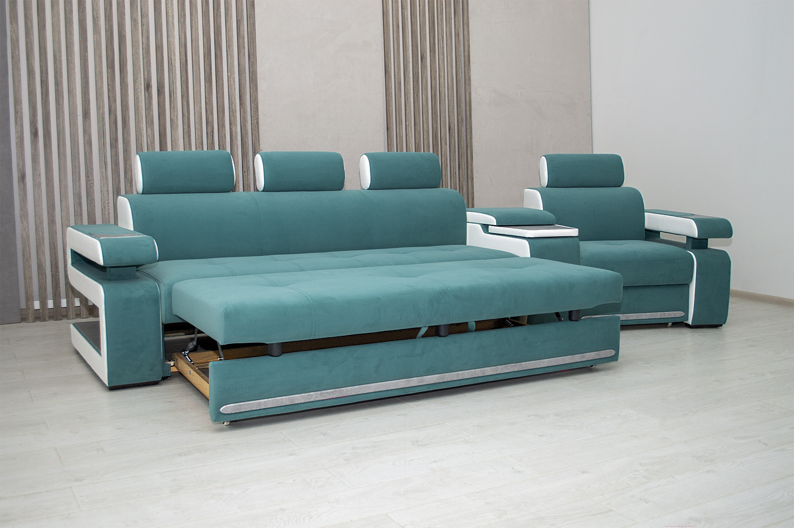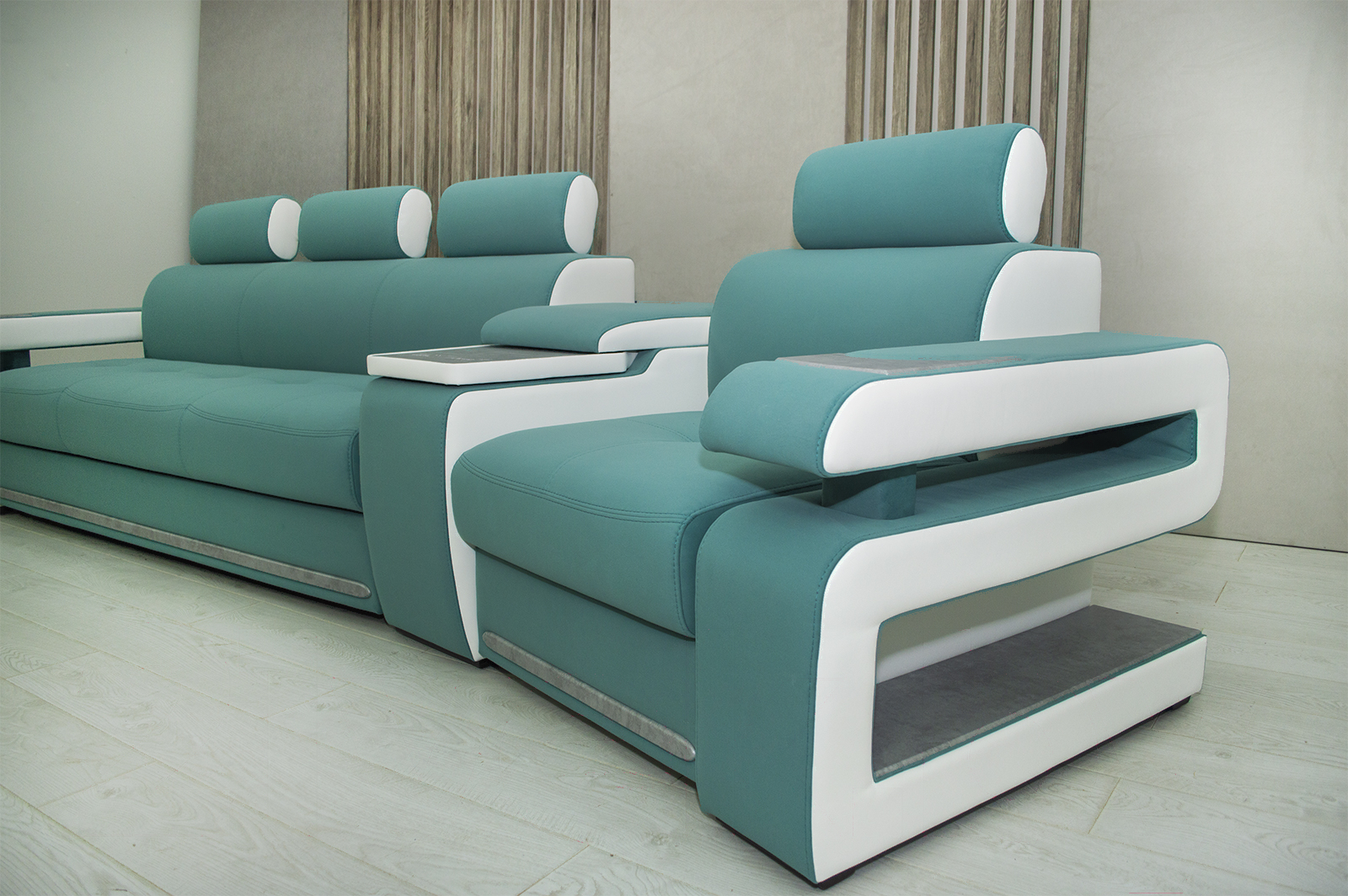 Диван Петрамебель Марсель люкс модульный левый (велюр светло-зеленый/кожзам белый)
