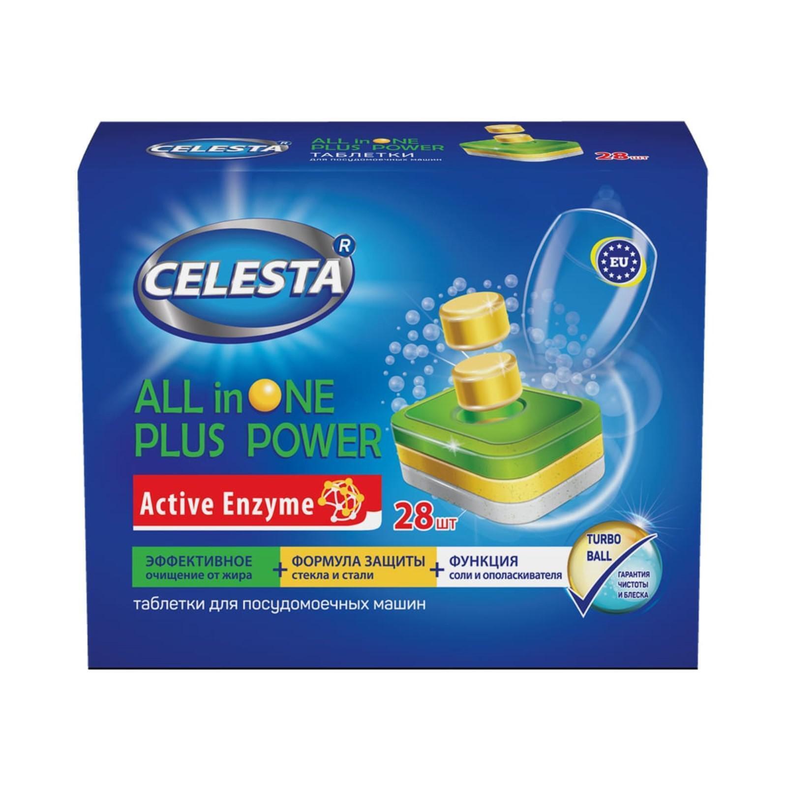 Таблетки для посудомоечной машины Celesta All in one plus power. Инновационная формула с активными энзимами.