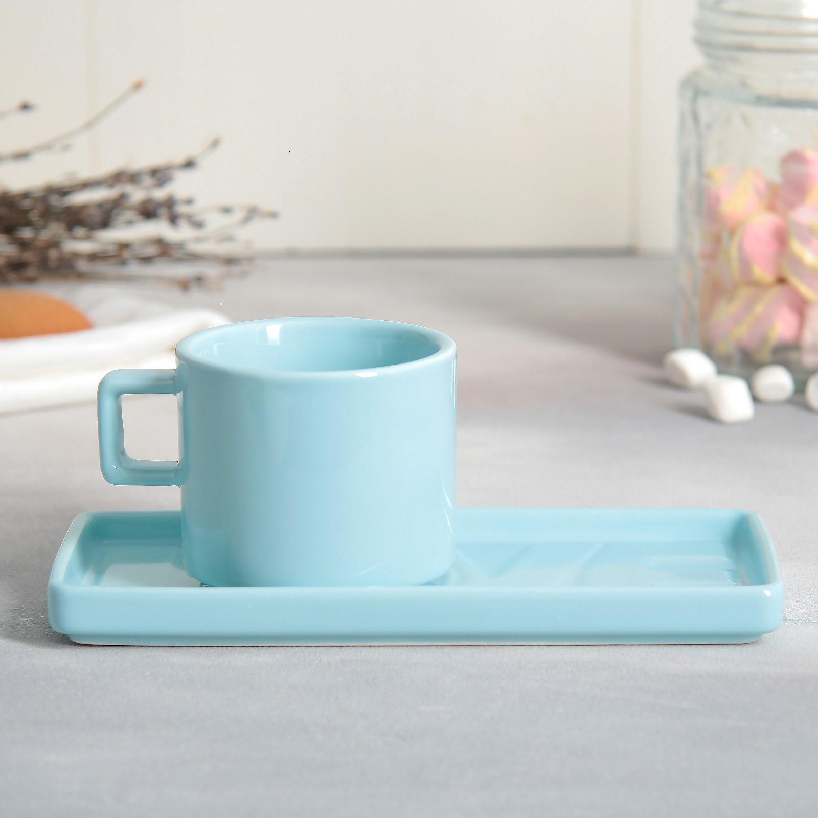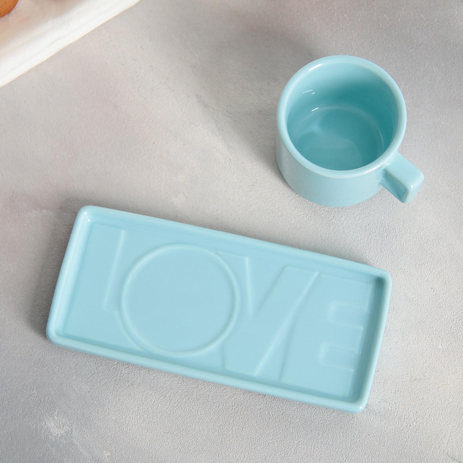 Чайная пара Love голубая, кружка 150 мл, блюдце 17,5х8 см