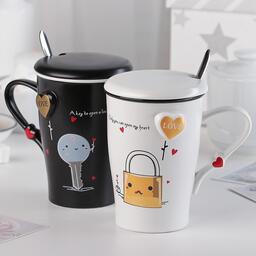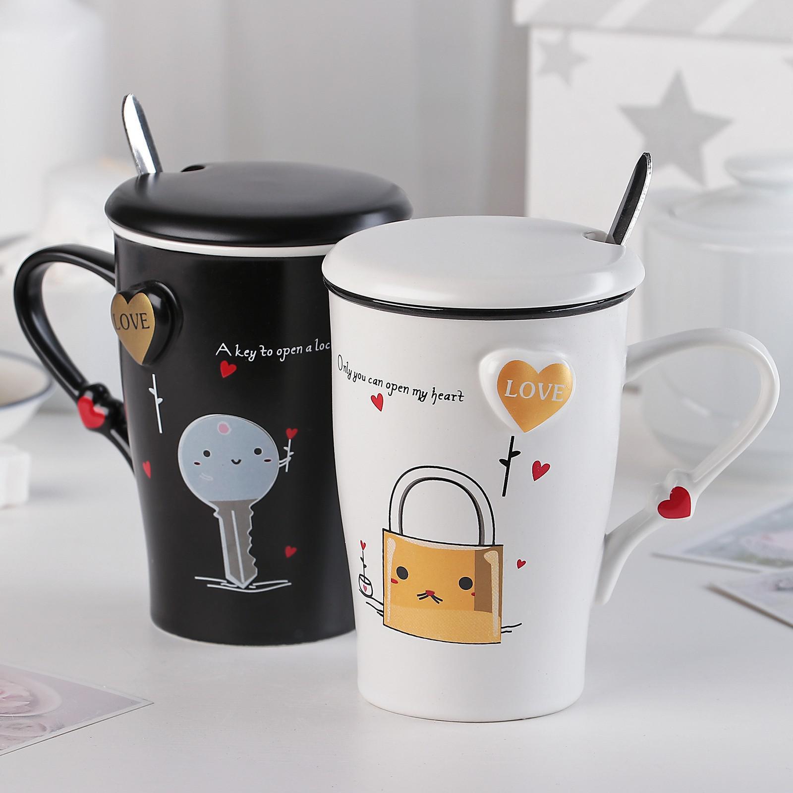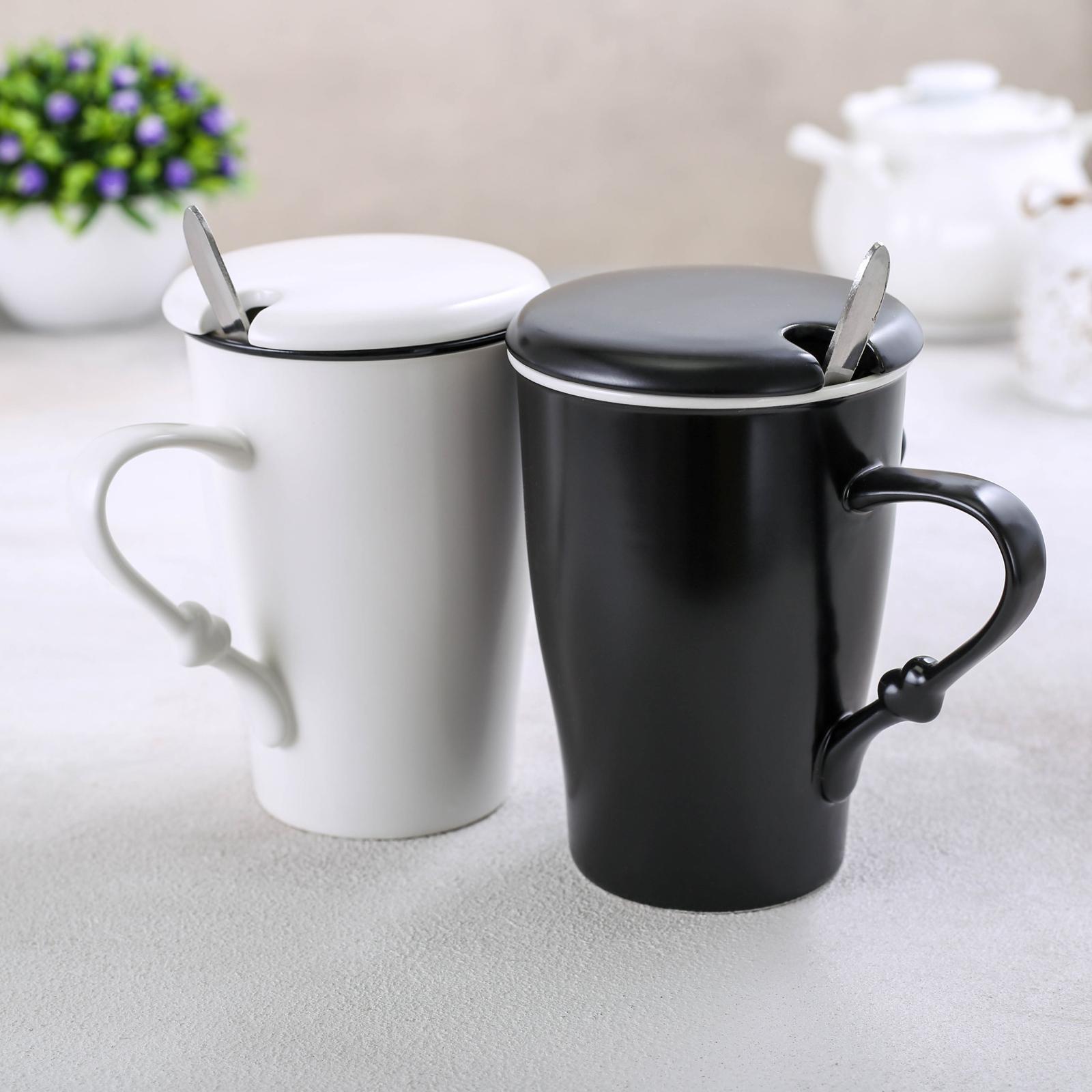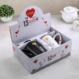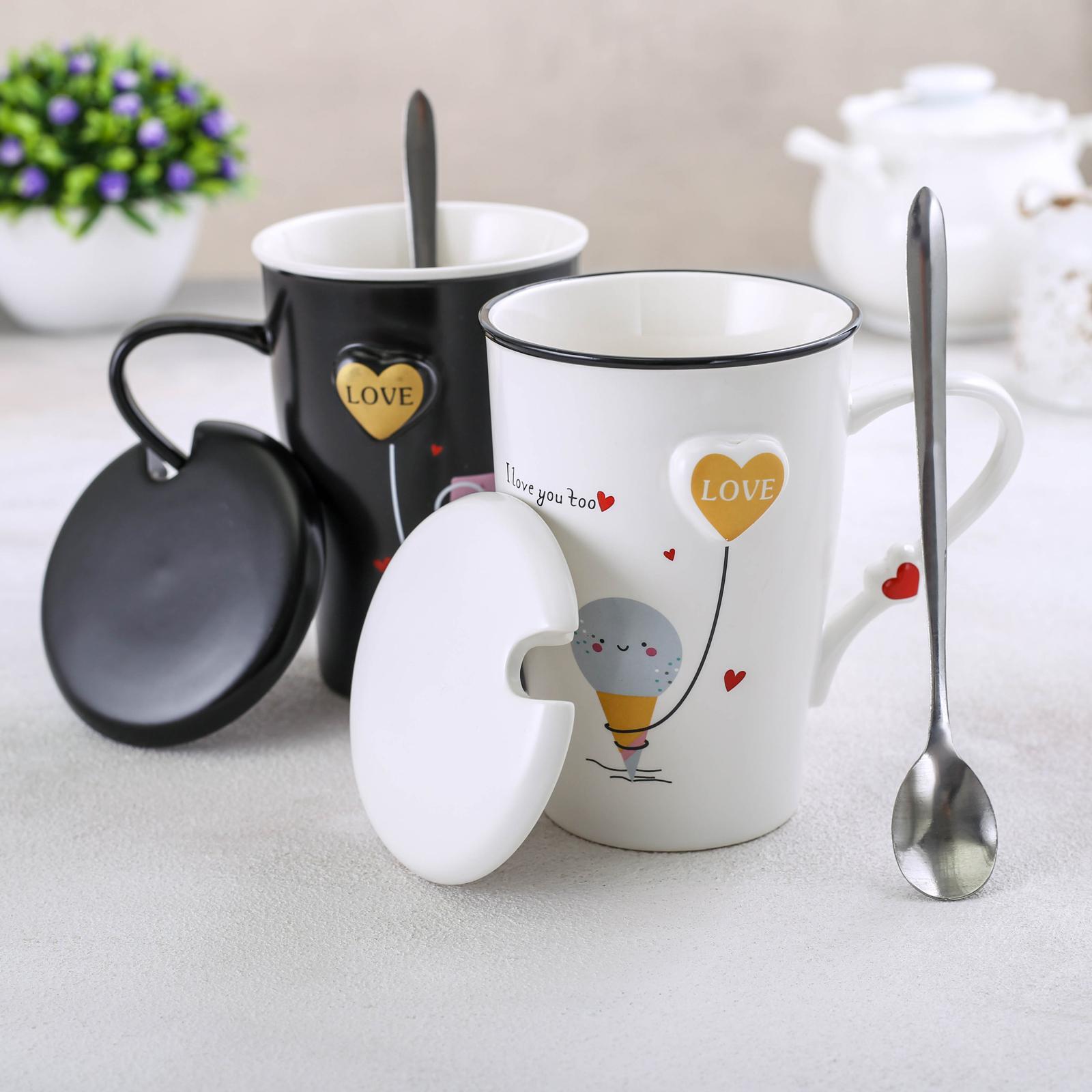 Набор кружек «Узы любви», 400 мл, с керамическими крышками и ложками, 2 шт, цвет МИКС