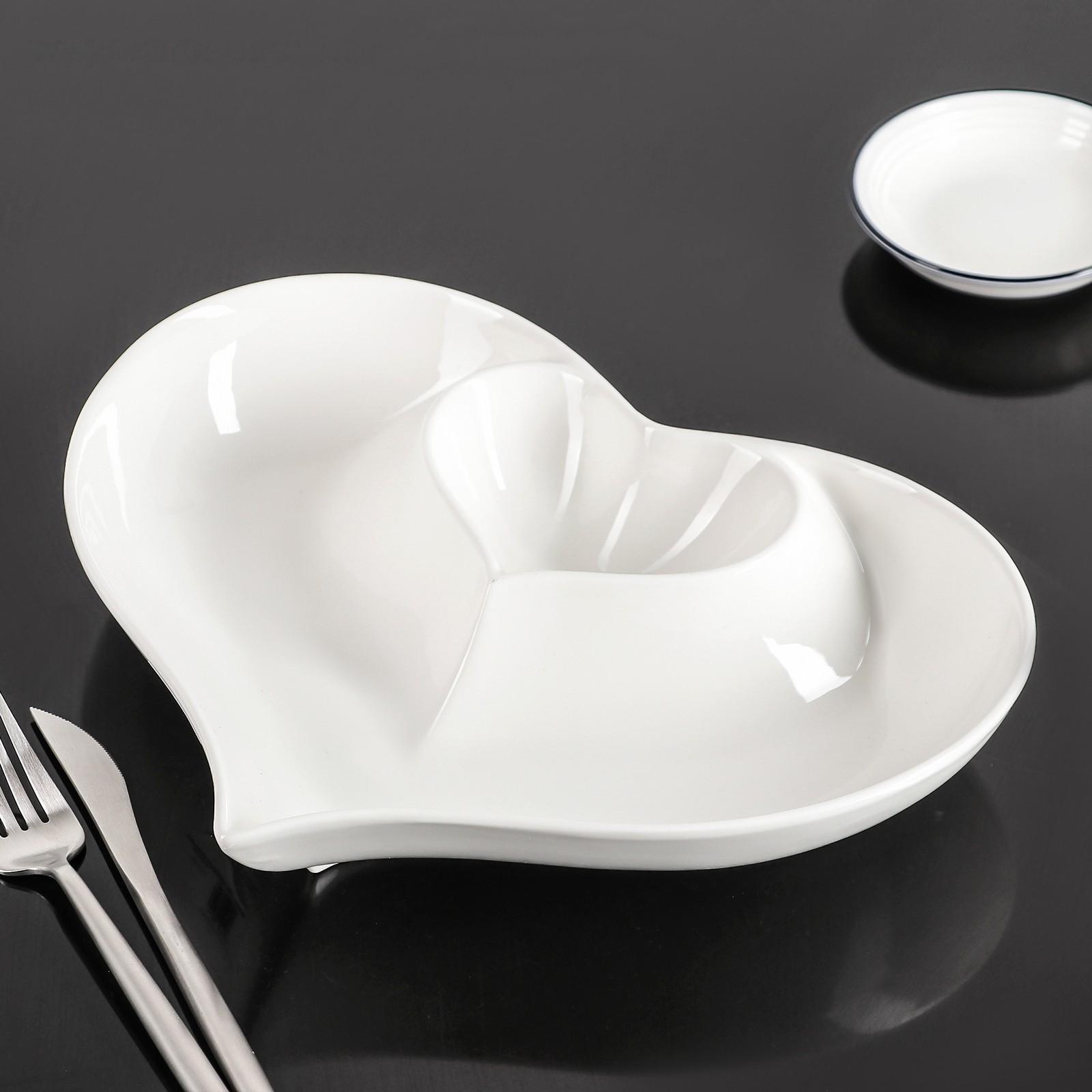 Блюдо с соусником «Сердце», 28×22×4 см, цвет белый