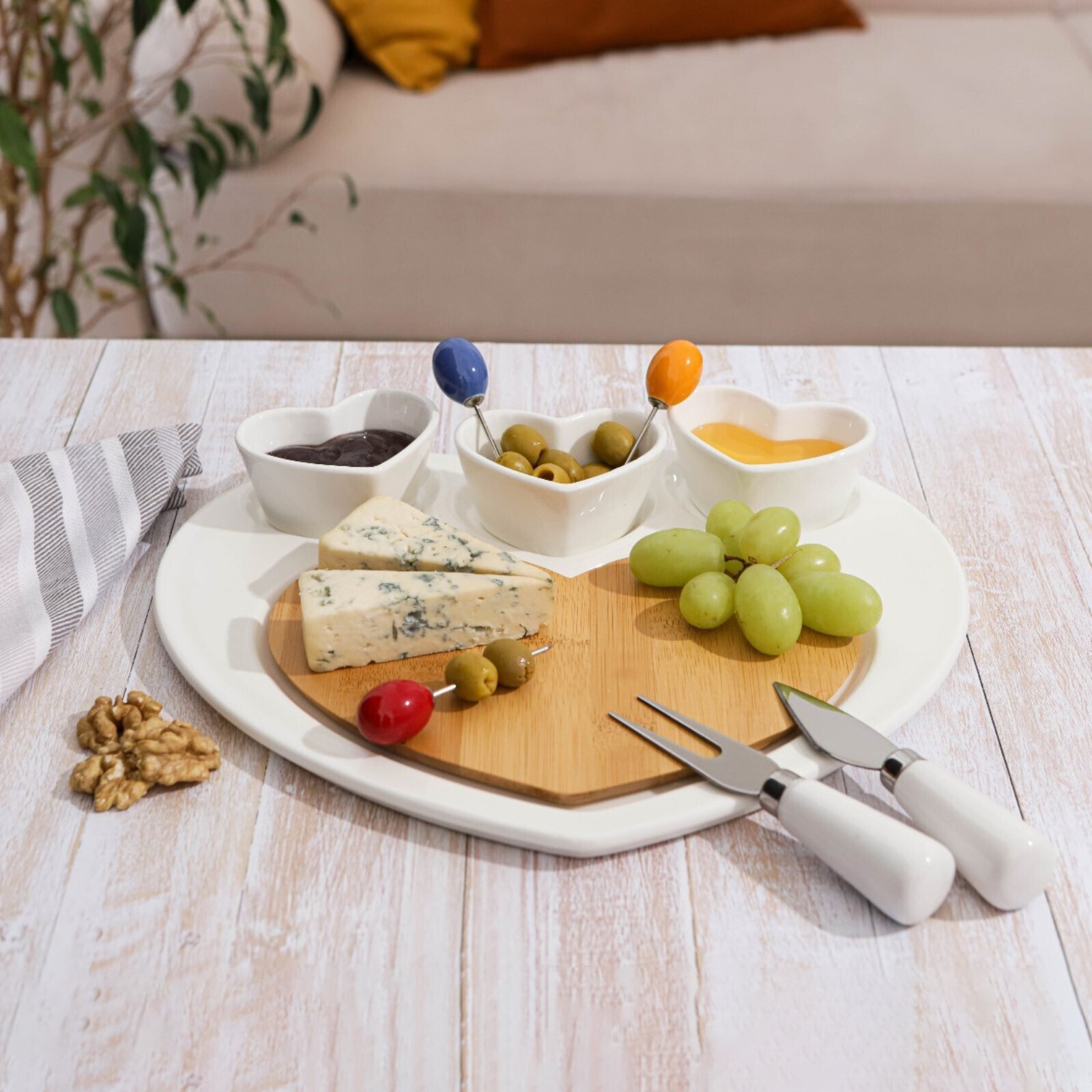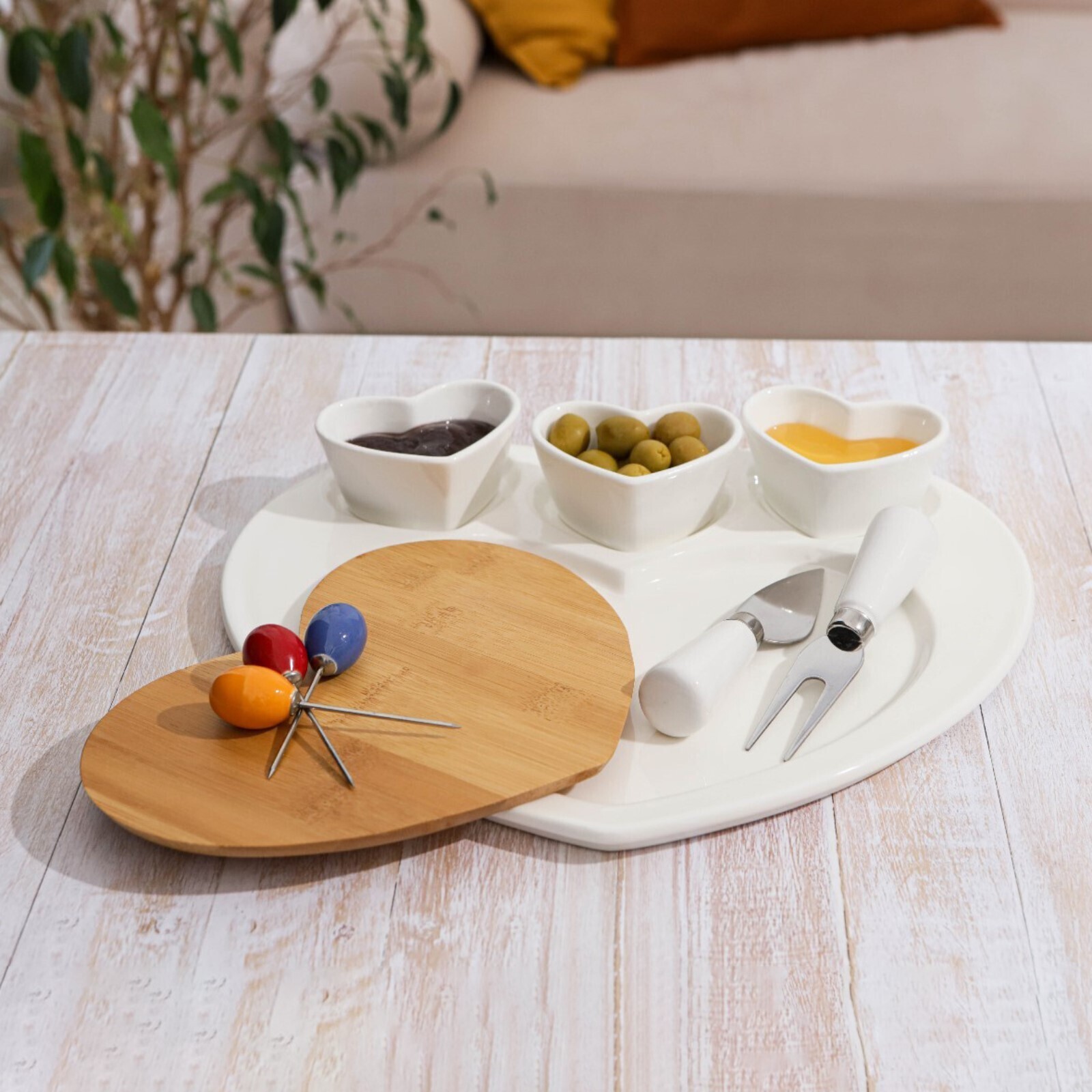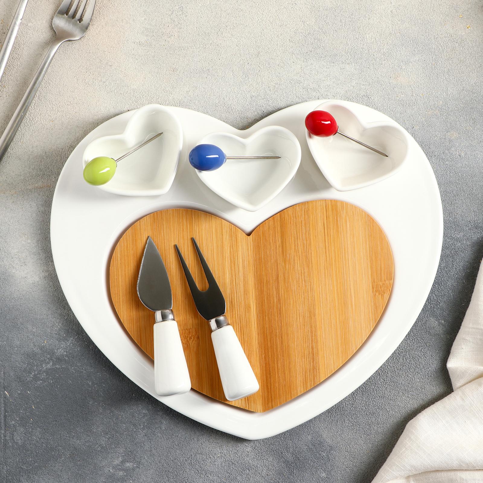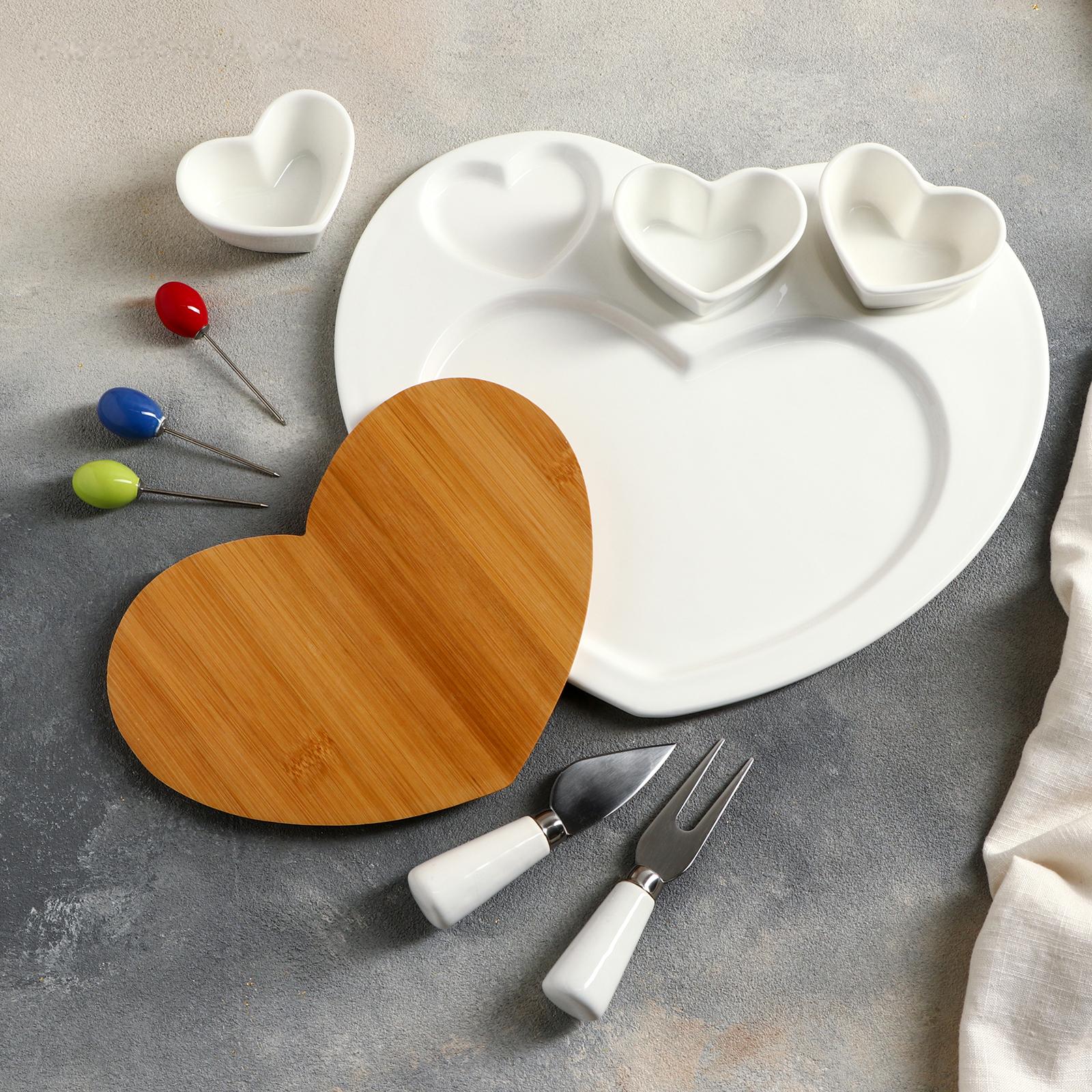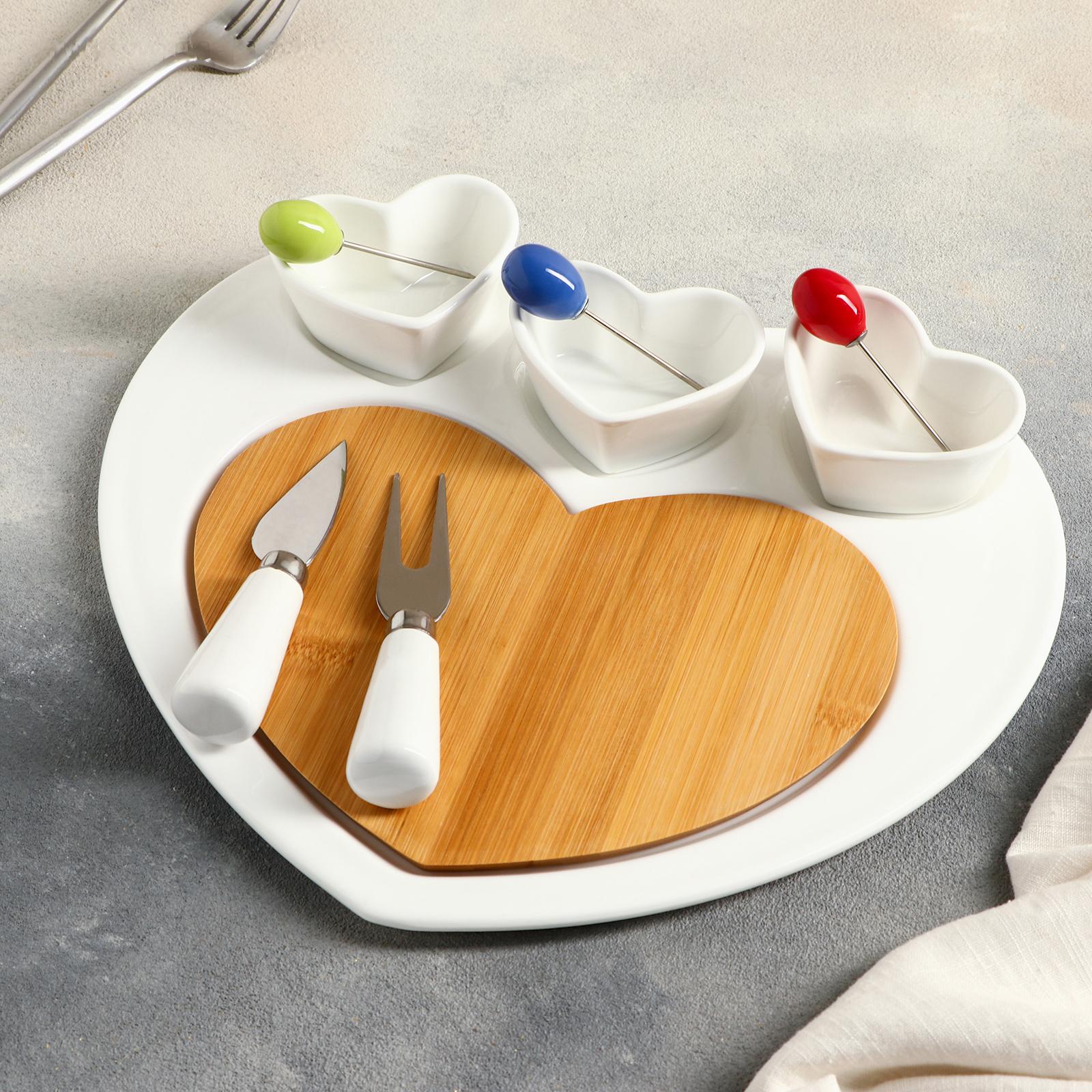 Блюдо для подачи «Эстет. Сердце», 8 предметов: 3 соусника 8×6×4 см, 3 шпажки, нож, вилочка